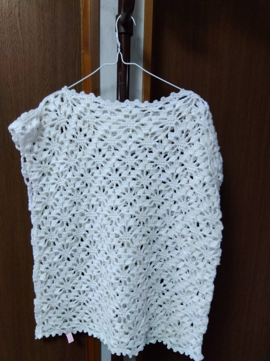 ハンドメイド ニットベスト 白 着丈64cm 身幅54cm XLサイズくらい 未使用品