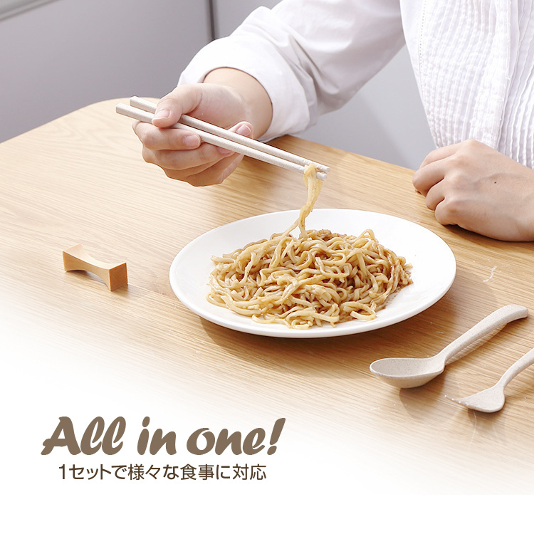 箸/スプーン/フォーク3点セット 北欧デザイン 麦わらカトラリー お弁当 アウトドア キャンプや登山 2セット