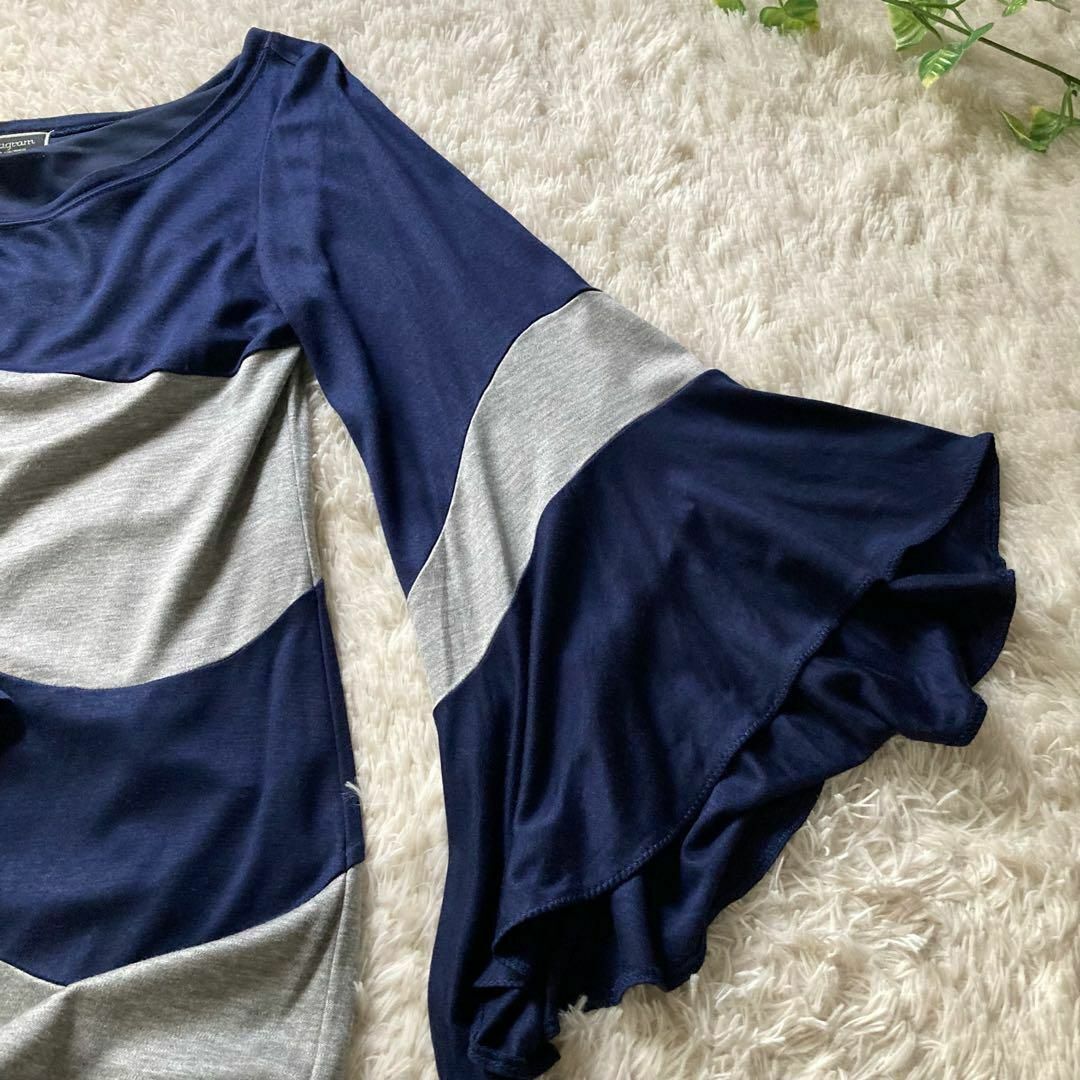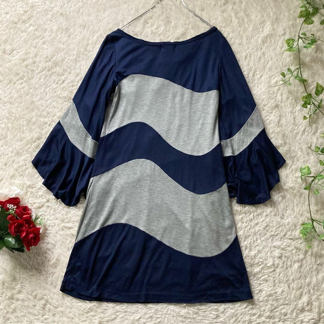 袖はフレアスリーブになっており、二の腕を細く長く見せてくれます(^^)