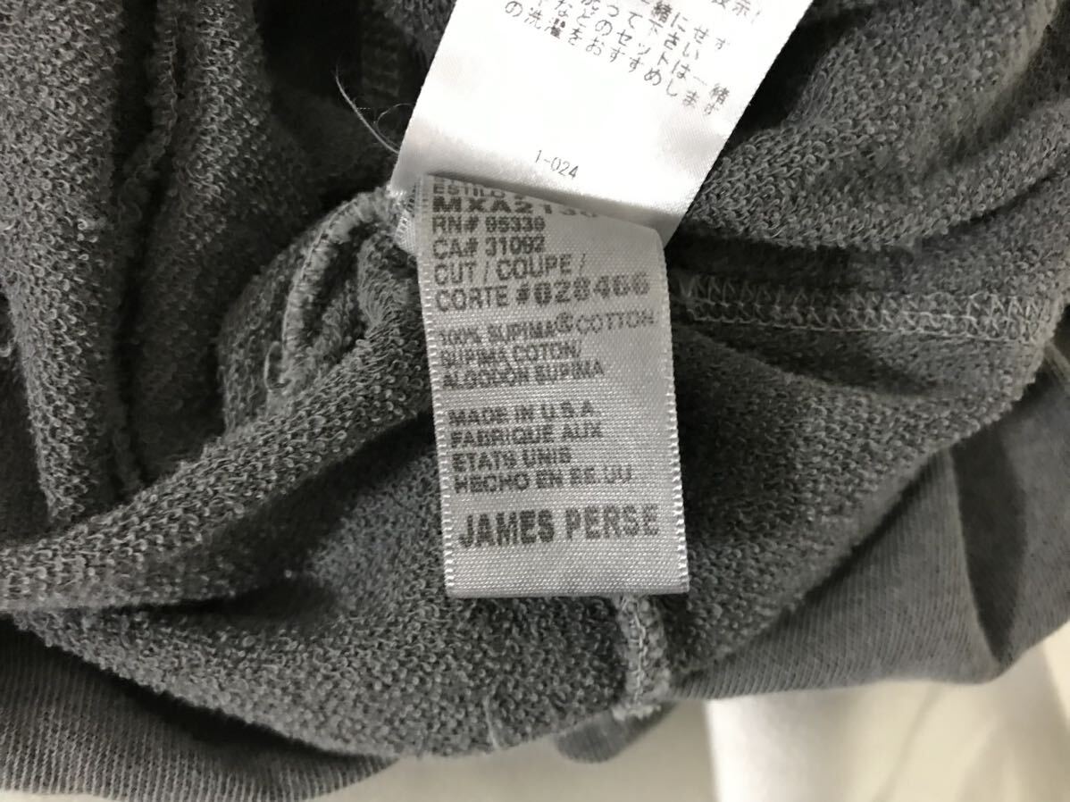 商品名:本物ジェームスパースJAMESPERSEトゥモローランドコットンスウェットジップ長袖TシャツロンTパーカーメンズサーフアメカジスーツビジネスモードグレー0XSアメリカ製