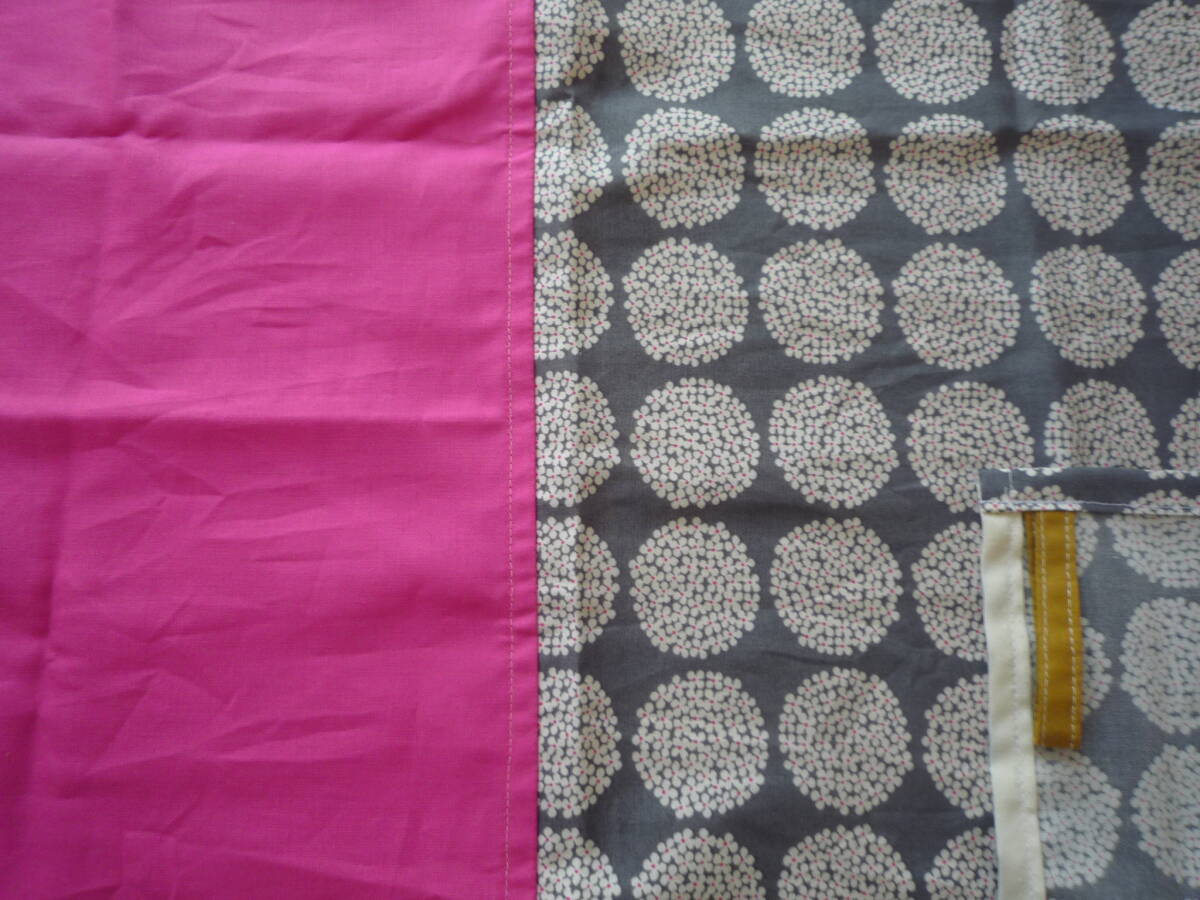 グレーの北欧あじさい柄 × 濃いピンク無地 の、2種類の切り替え生地がオシャレです♪