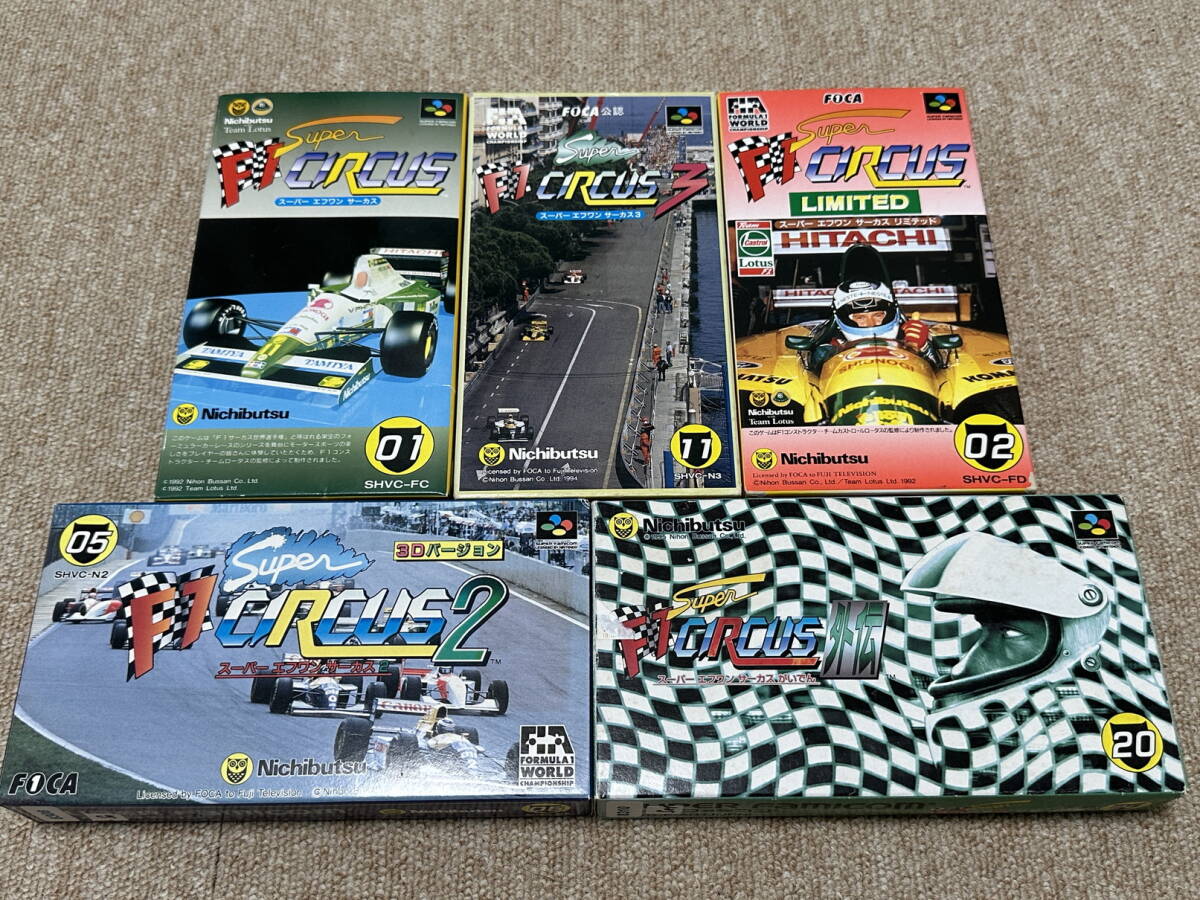 スーパーファミコン(SFC)「スーパーF-1サーカス シリーズ全5本フルセット」(箱・説明書 付/中古)