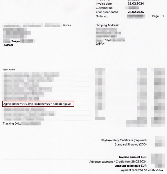 ※ 商品の入手は通常 Phytosanitary Certificate/植物検疫書の現地作成日付から 1~5週間後、Invoiceの日付からは 4週間~数ヶ月後とまちまちです。