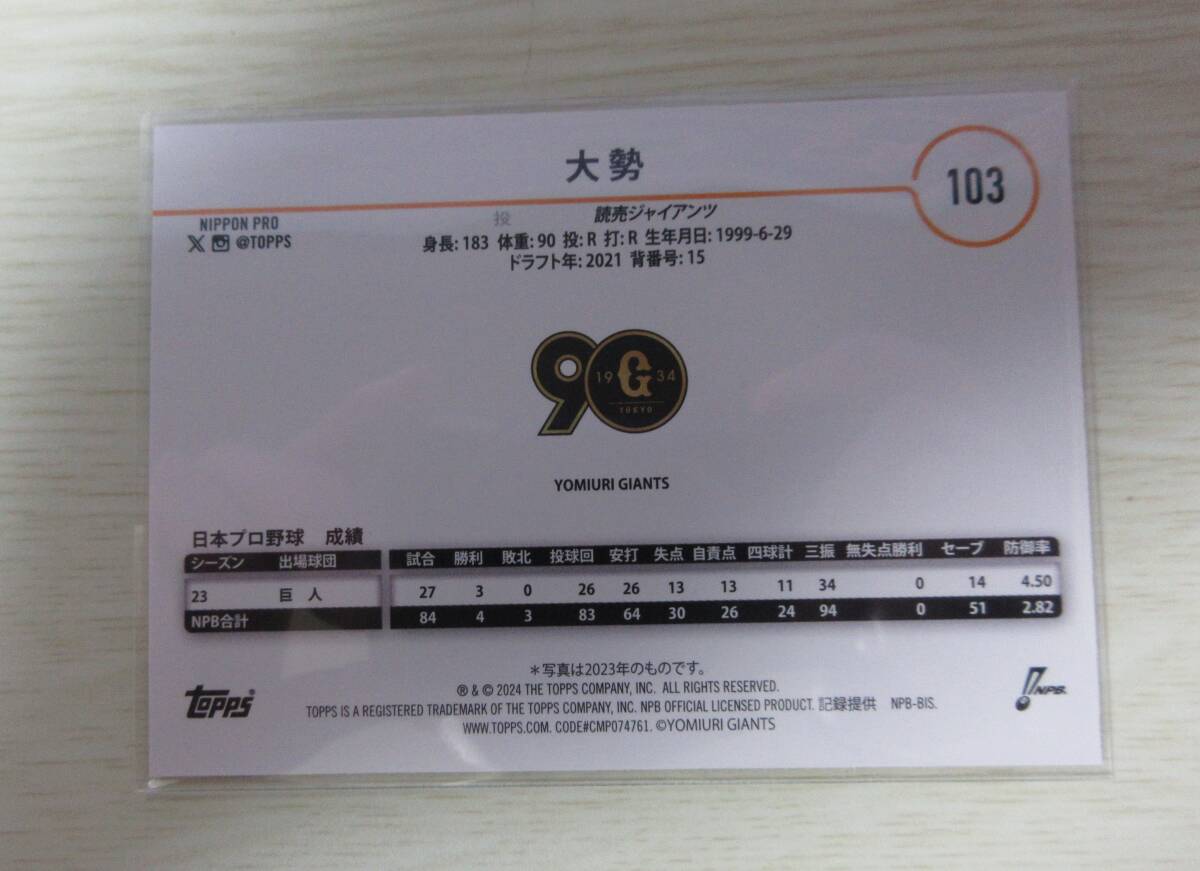 2024 TOPPS NPB 【大勢】 【読売ジャイアンツ】になります。カードは排出後直ぐにスリーブに入れましたが、初期からの傷や折れなどを気になさる方は入札をご遠慮下さい。発送はスリーブ、トップローダーに入れて、水濡れ対策をして定型郵便で110円になります。ノークレームノーリターンでお願いします。