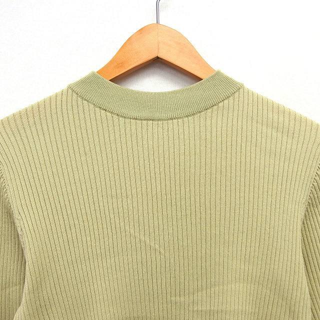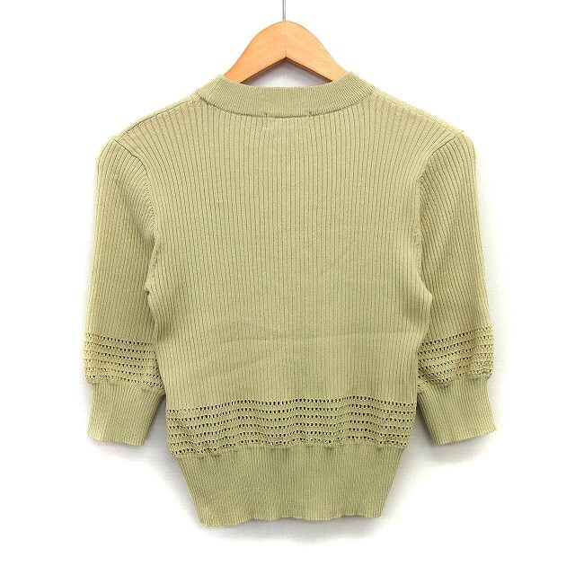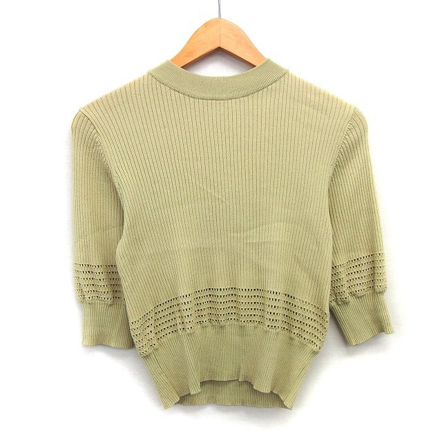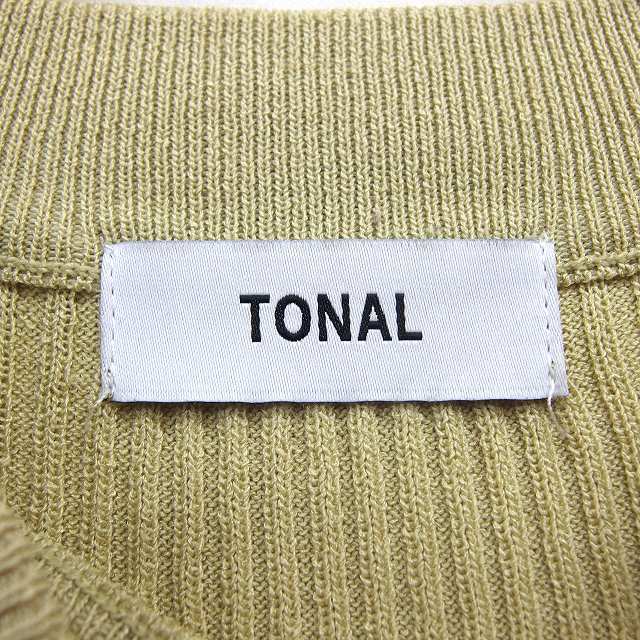 トーナル TONAL リブ カットソー 切替 かぎ針編み 七分袖 丸首 38 ピスタチオグリーン 緑 /HT16 レディース