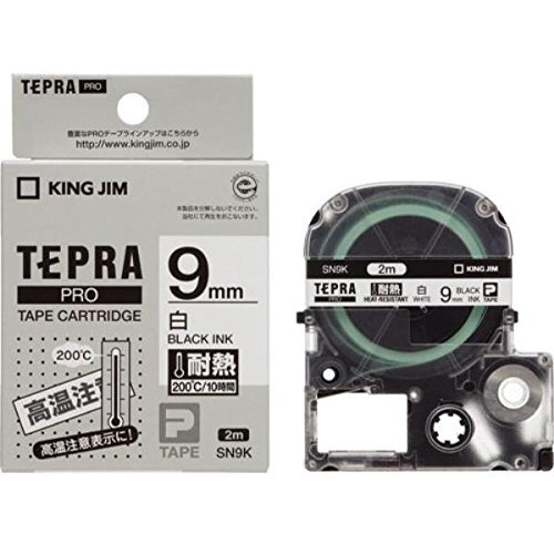 ◆テプラPRO・耐熱ラベル 白/黒文字◆高熱環境に耐えるラベルです。200℃で10時間程度の耐熱性能を実現。 / ■ 仕 様 ■長さ:2m耐熱ラベル 白/黒文字テープ幅:9mm / |