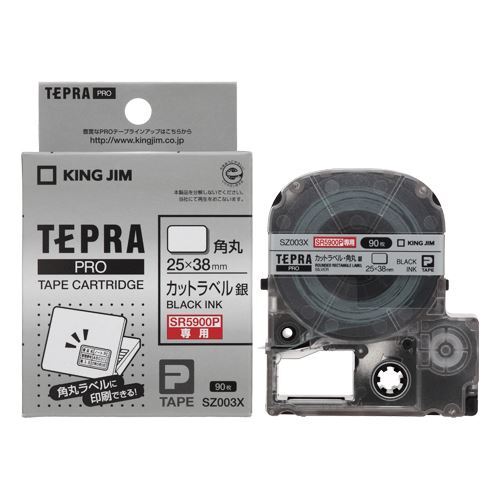 | ◆テプラPRO・カットラベル 銀/黒文字◆角丸25×38mm◆枚数:90枚 / ※SR5900P専用です。※PROテープカートリッジ・Grandテープカートリッジ・TRテープカートリッジ・JETテープカートリッジ・miniテープカートリッジとは互換性がありません。 |