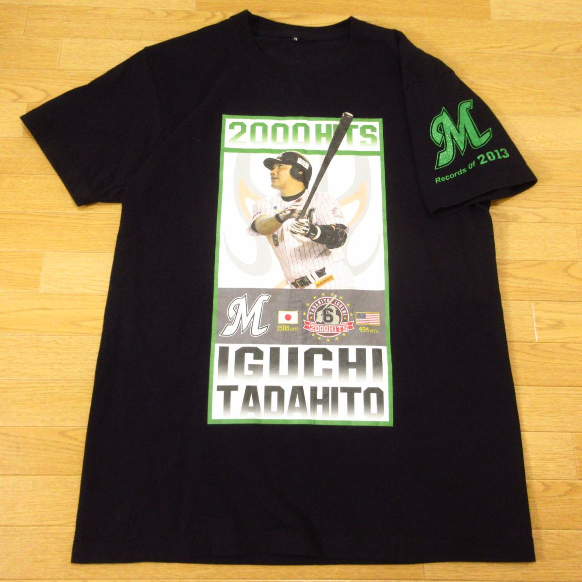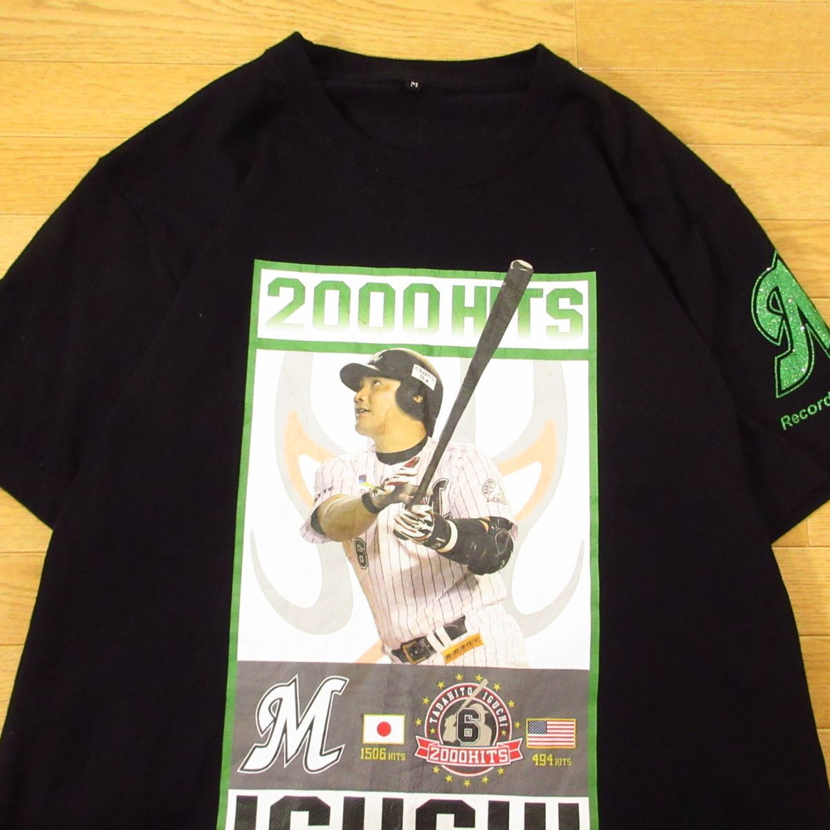 ◎千葉ロッテマリーンズ #6 井口 資仁 2000本安打◆記念 Tシャツ デカプリント グッズ ユニフォーム 野球◆メンズ 黒 Mサイズ◆A5910