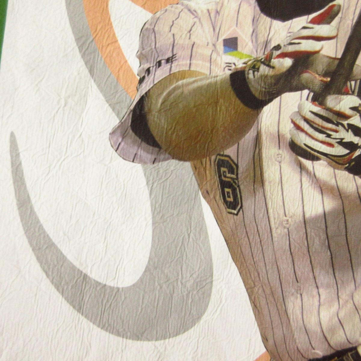 プリントにわずかにシワ、プリント割れ(画像)ございますが、アイテム自体はさほど使用感なく普通にお使いいただけます。