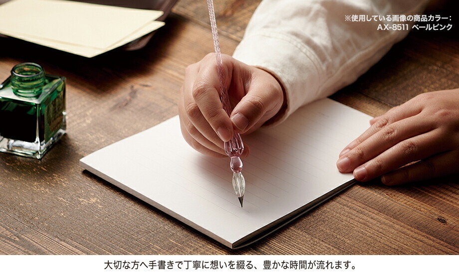 ●なめらかな書き心地で初めてでも使いやすい、ペン置き付きガラスペン。