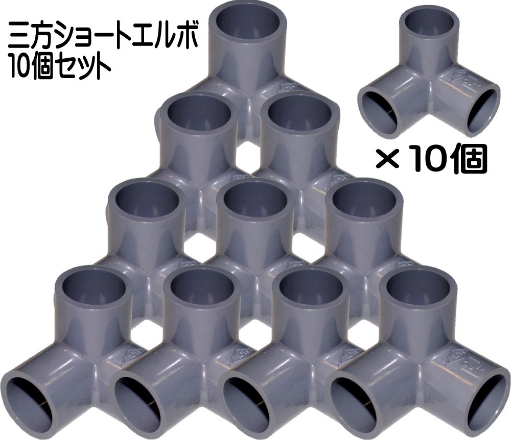 3方ショートエルボ13A 10個セット 水槽 配管 吸水 排水 塩ビ管 分岐 ろ過 新品