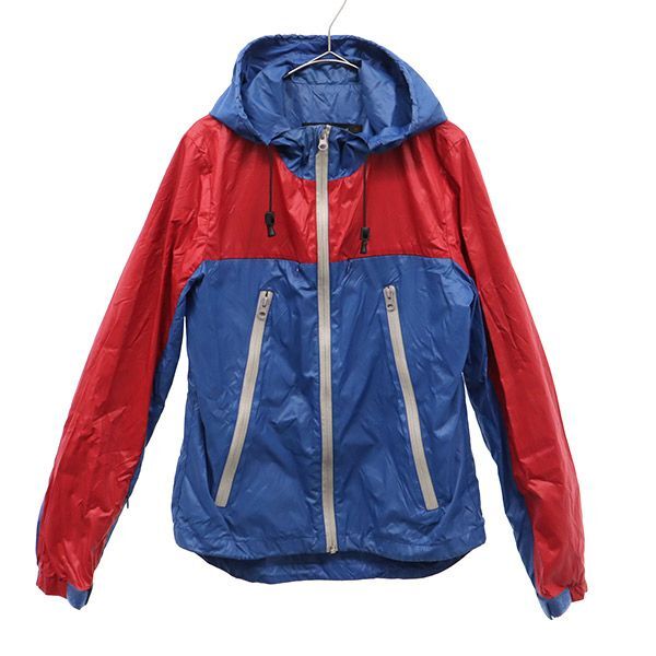 | 詳細 | 前後の着丈の長さが違っております(前身頃の着丈は59.5cmとなっております)。胸元の左右と両袖口と背中にファスナー付きのポケットが有ります。両袖口にマジックテープが付いており調整可能です。フード周りと裾周りにドローコードが入っており調整可能です。裏地が有ります。ファスナーのチャーム部分に所々スレが有ります。袖、前身頃に薄い汚れが有ります。特に気になるようなダメージはございません。 |