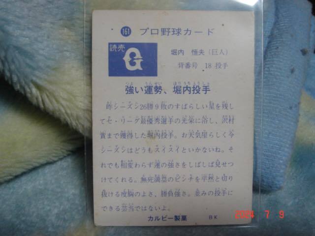 カルビー73年プロ野球カード NO.161(堀内/巨人) 旗版