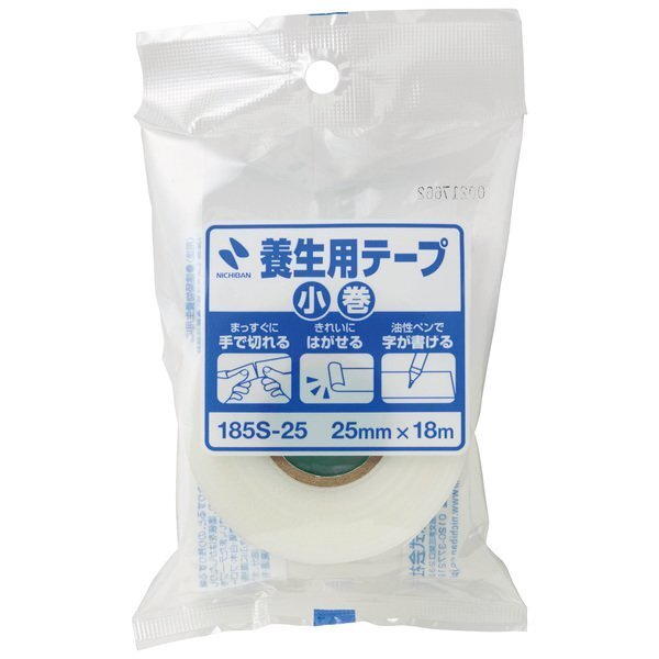 仮止めや掲示に便利な養生テープ。手のひらサイズの小巻タイプで使いやすい。長尺18mでお得です。手で簡単に切れて、のり残りが少なく、油性ペンで文字が書けます。