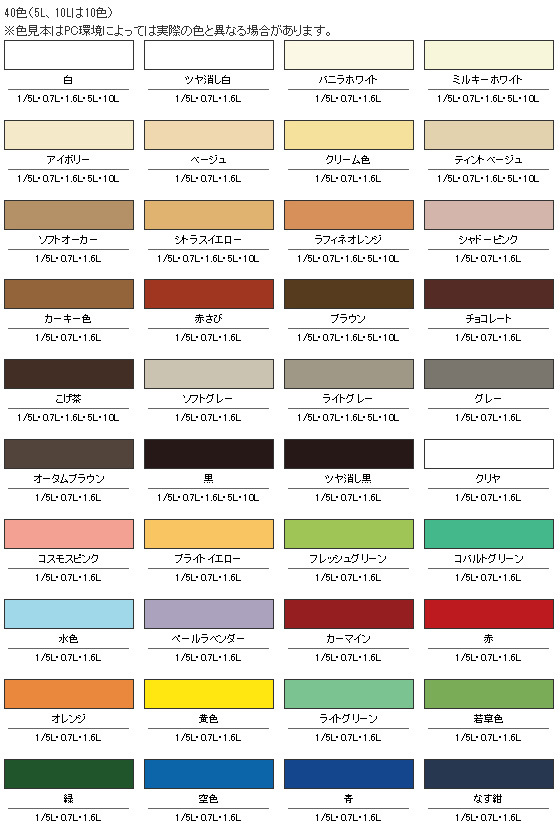 | ●汚れにくく、耐久性が優れた高性能塗料です。●強力防カビ剤を配合していますので、長時間カビの発生を防ぎます。●サビドメ剤を配合していますので、サビの発生を防ぎます。●いやな臭いのしない無臭タイプで、1回塗りで仕上がります。●厚塗りしてもタレにくく、たいへん塗りやすい塗料です。【注意事項】●うすめ方:塗りにくいときは水(5%以内)でうすめて下さい。●乾燥時間:夏期/30分~1時間 冬期/2~3時間。●標準塗り面積:【1回塗り】1/5L 0.8~1.4平米(タタミ0.9~1.2枚分)/0.7L 5.0~6.6平米(タタミ3.0~4.0枚分)/1.6L 11~15平米(タタミ6~9枚分)/5L 36~47平米(タタミ21~28枚分)/10L 71~94平米(タタミ42~56枚分) |