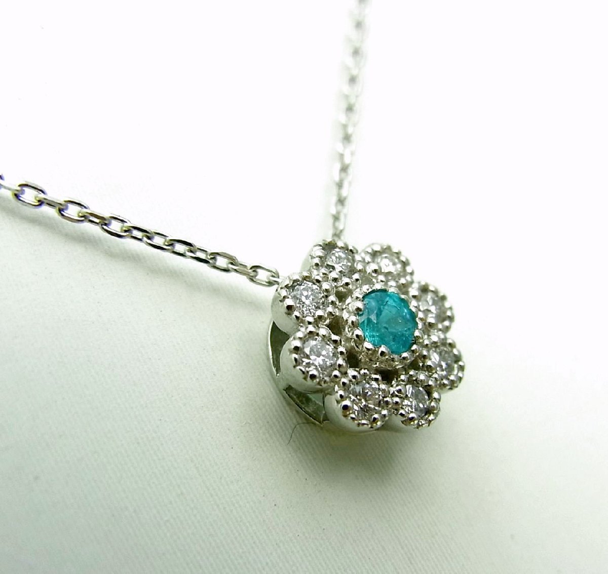 ギラギラネオンブルー ブラジル産パライバトルマリン0.04ct ダイヤ取巻プラチナペンダントネックレス 動画あり 送料込