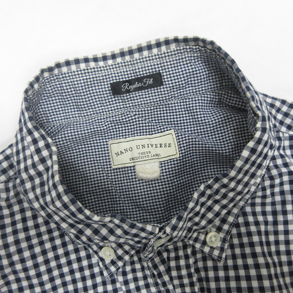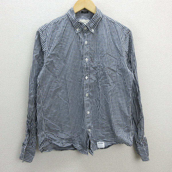 G■ナノユニバース/nano universe 長袖BDシャツ/ギンガムチェック柄【L】紺/men's/129【中古】■