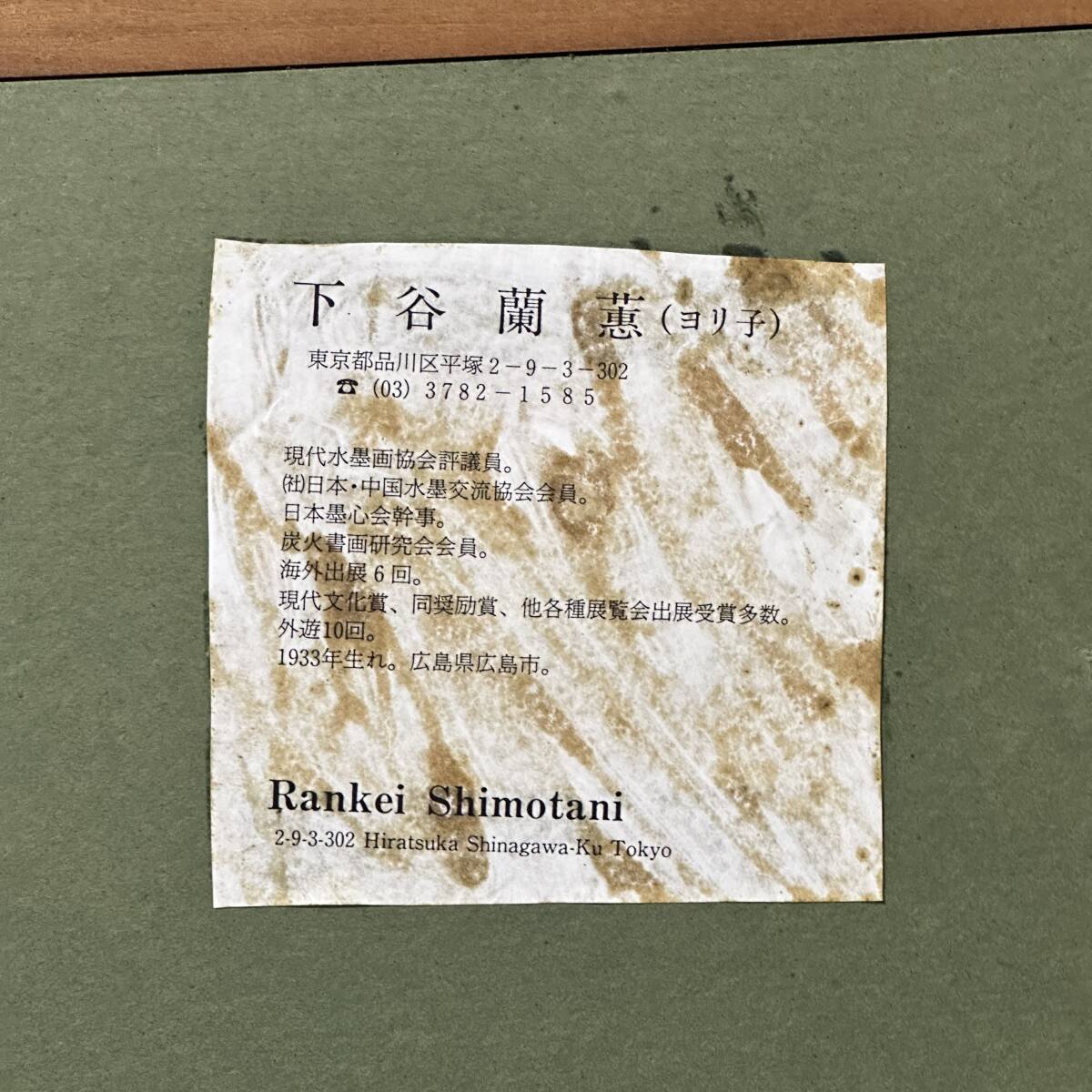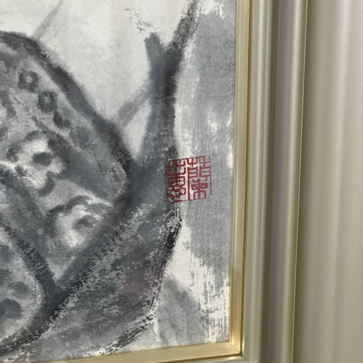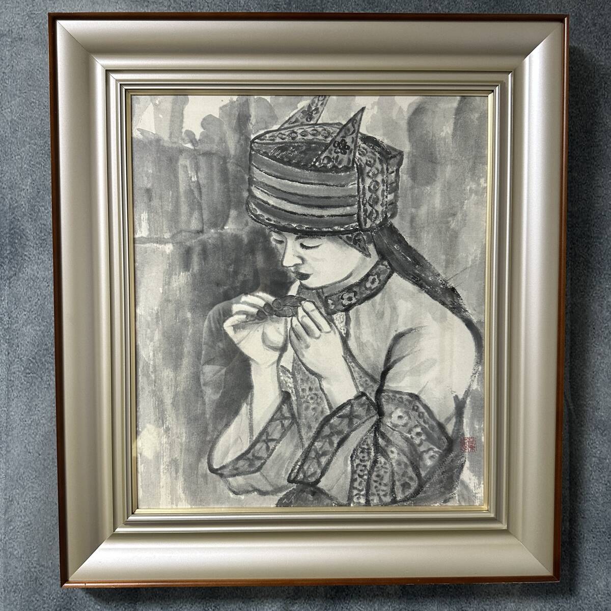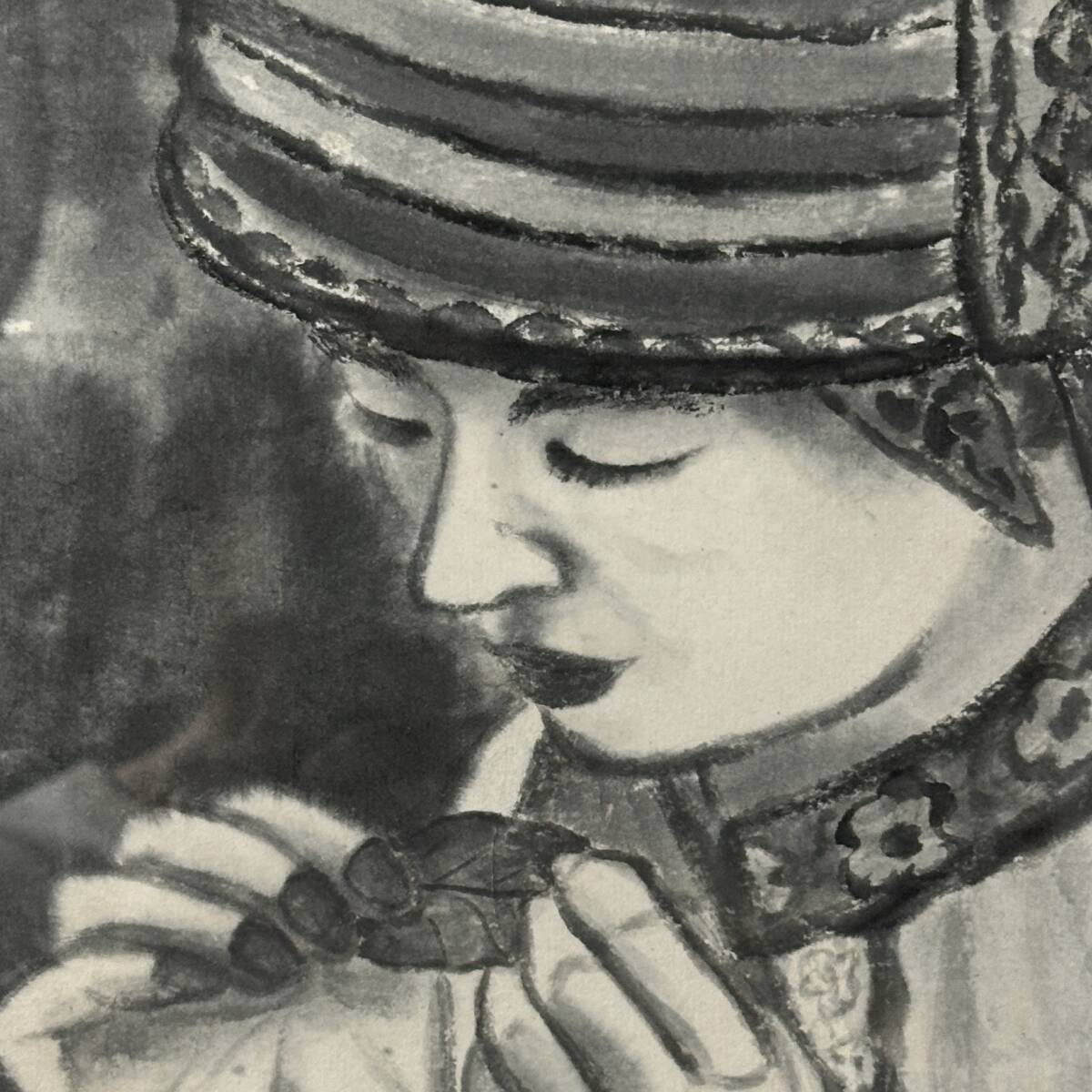 商品名:【真作】 下谷蘭蕙(より子)「水墨人物画」水墨画 額寸 64cm x 71.5cm 現代水墨画協会 炭火書画研究会 美術品