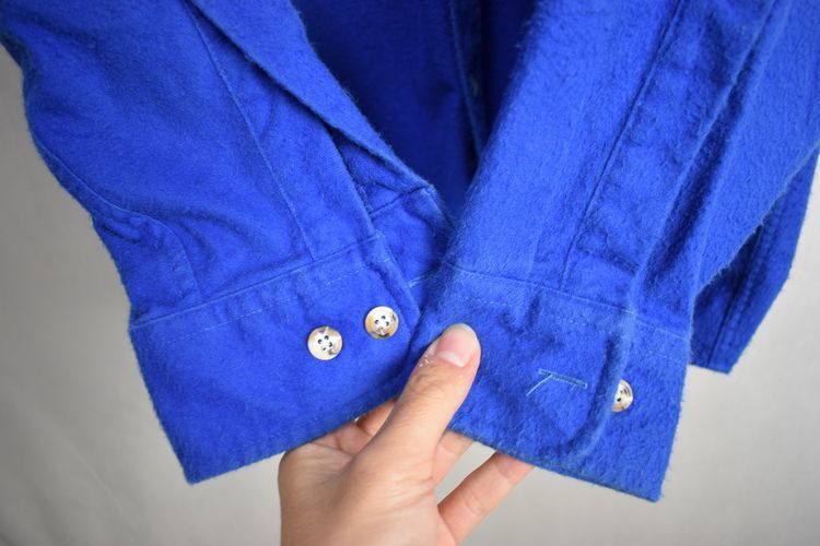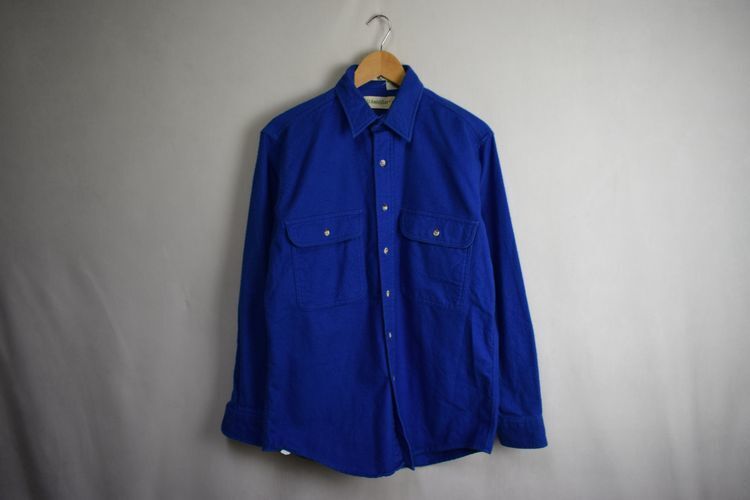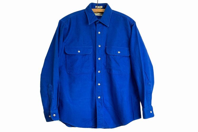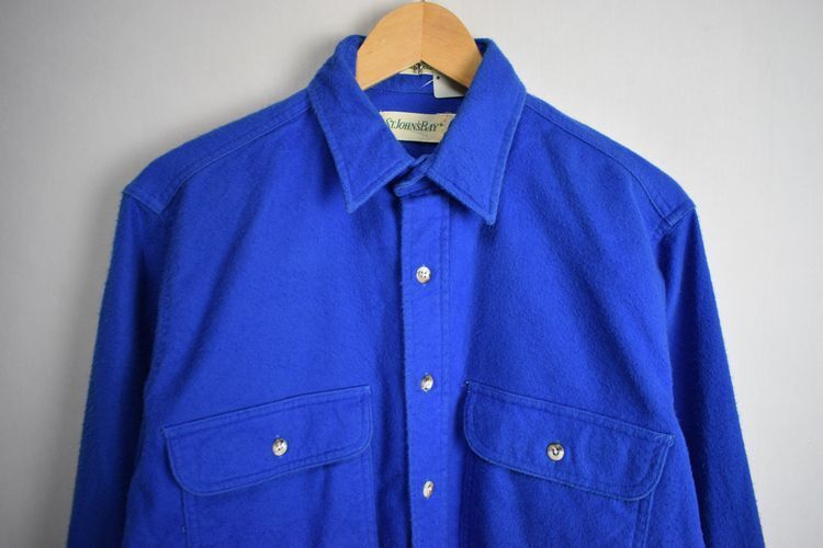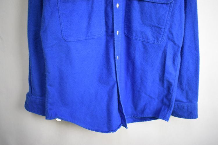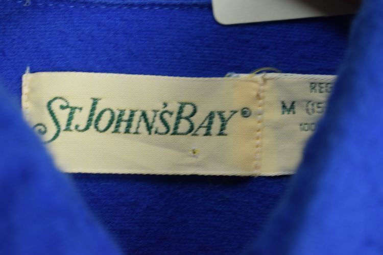 グッドカラー◎80sビンテージSTJOHNSBAYエスティージョーンズバイオールコットン長袖シャモアクロスシャツMブルーアメカジ nr24200
