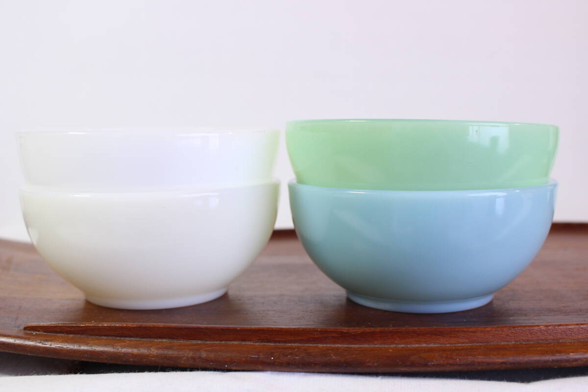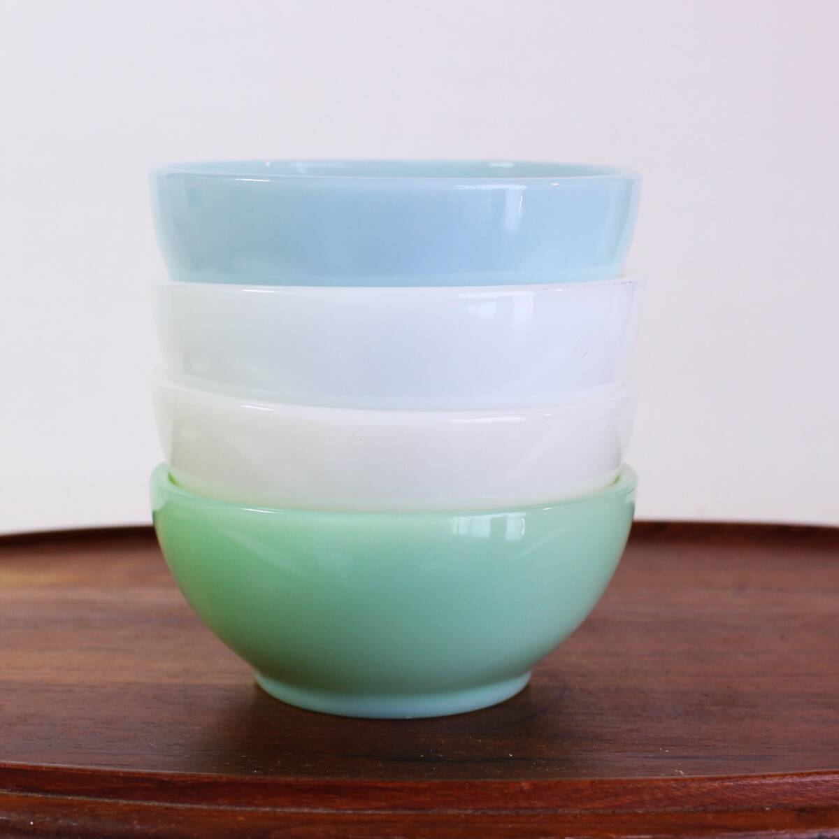 ファイヤーキングの、ターコイズブルー・ジェダイ・ホワイト・アイボリーのチリボウル 4個セットです。