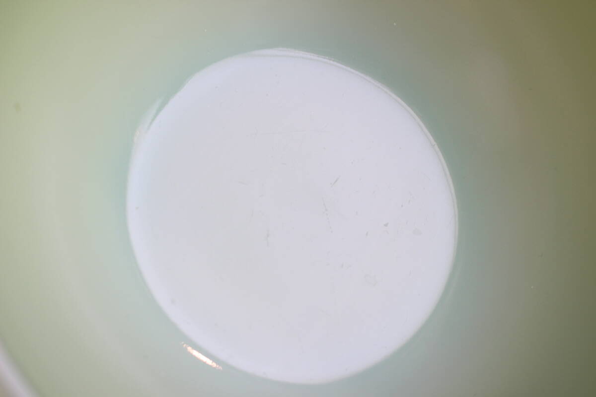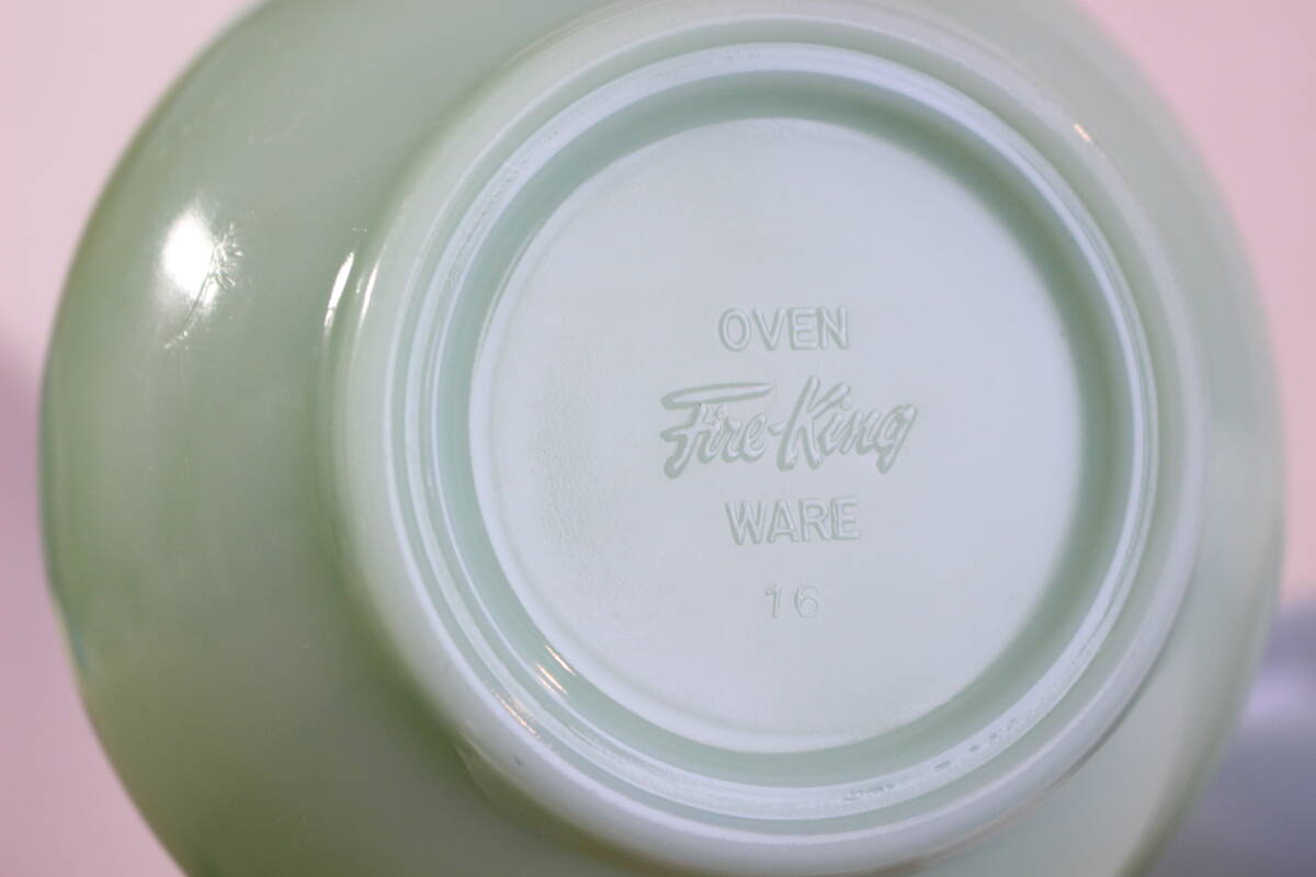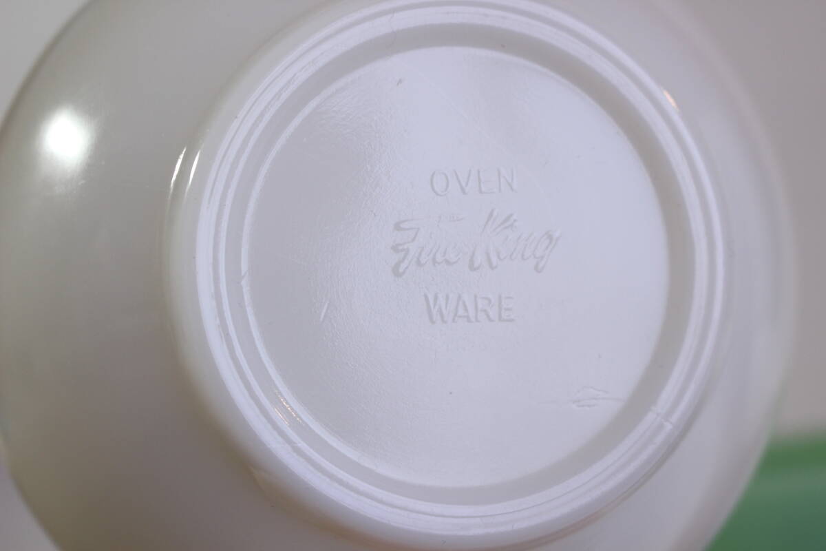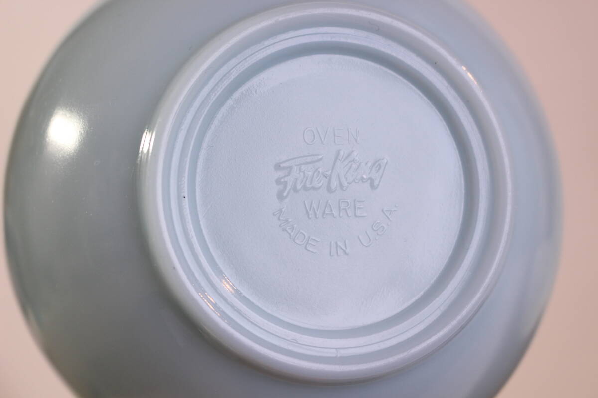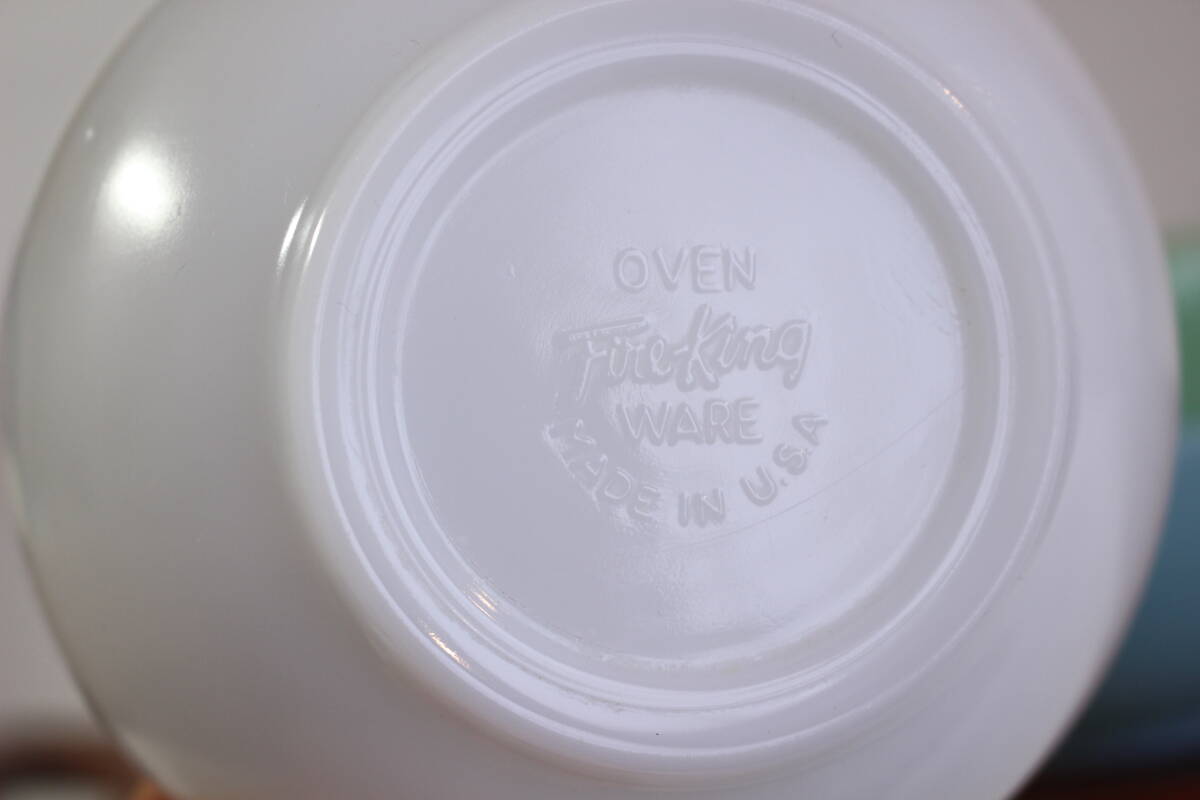ターコイズブルー・ホワイトの刻印は【OVEN Fire-King WARE MADE IN U.S.A】1956年頃~1960年代初頭のものです。