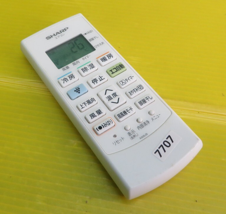 ★★即発送!SH-7707■SHARP シャープ エアコン用リモコン A906JB★ 動作品 保証付
