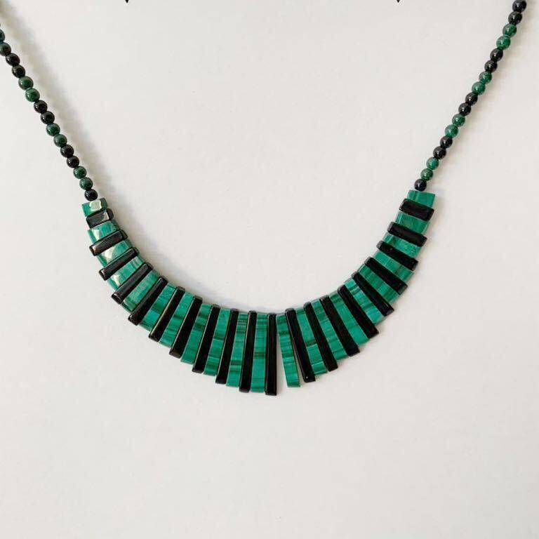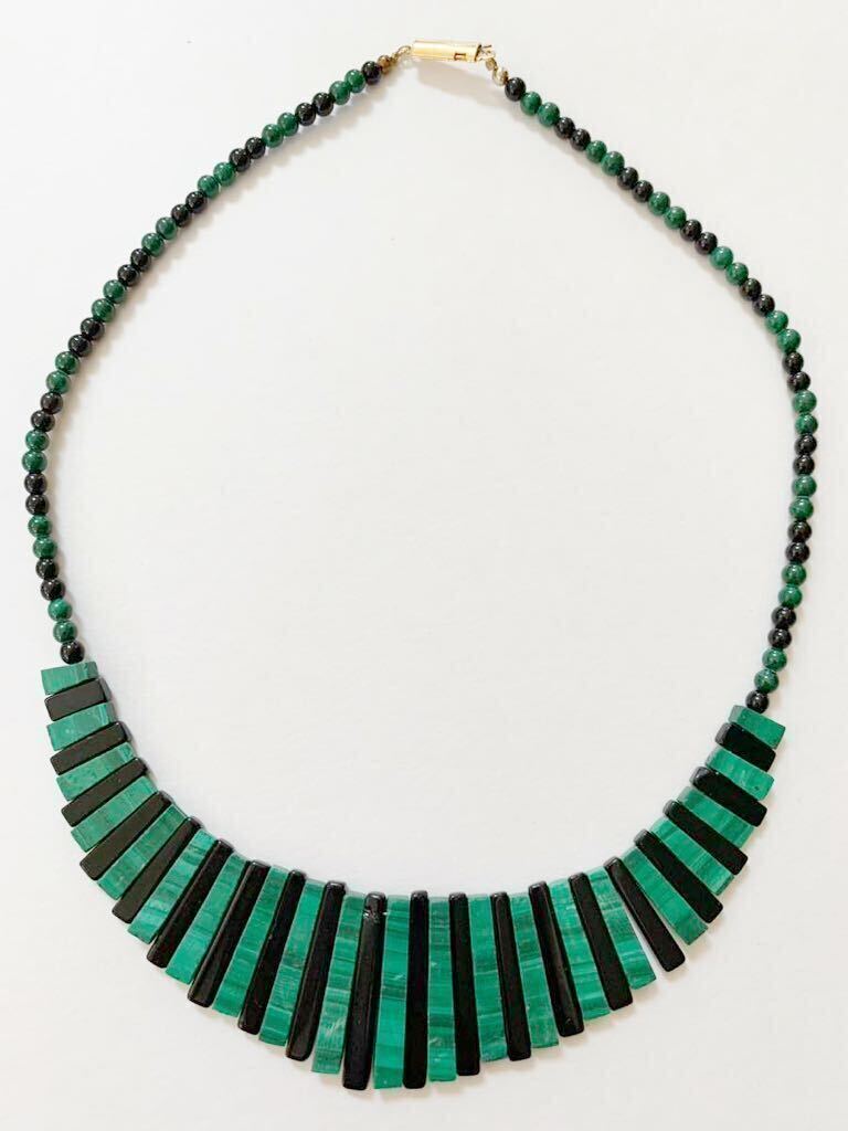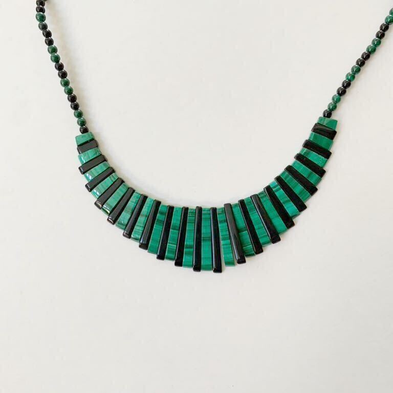 【美品】ヴィンテージ マラカイト オニキス ネックレス フラット クレオパトラ 孔雀石 レア ボリューミー エイラット