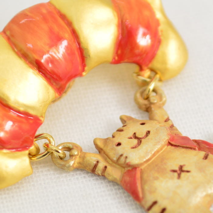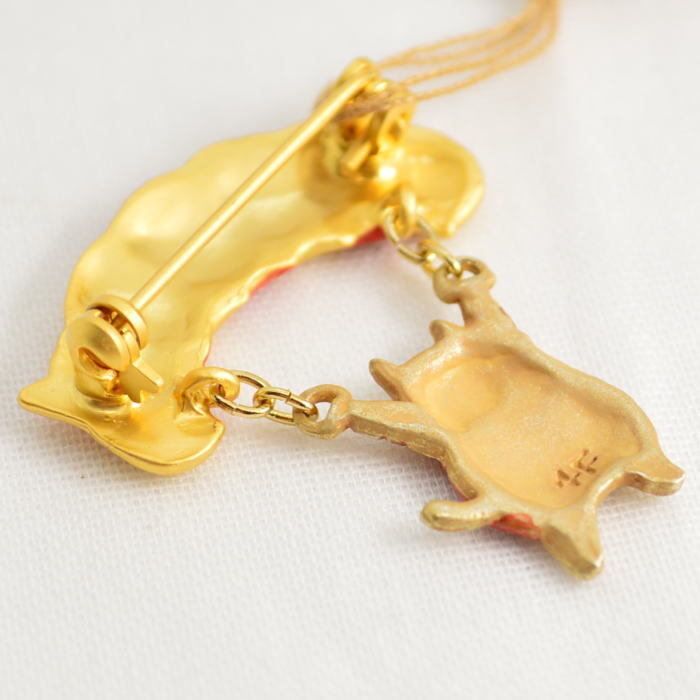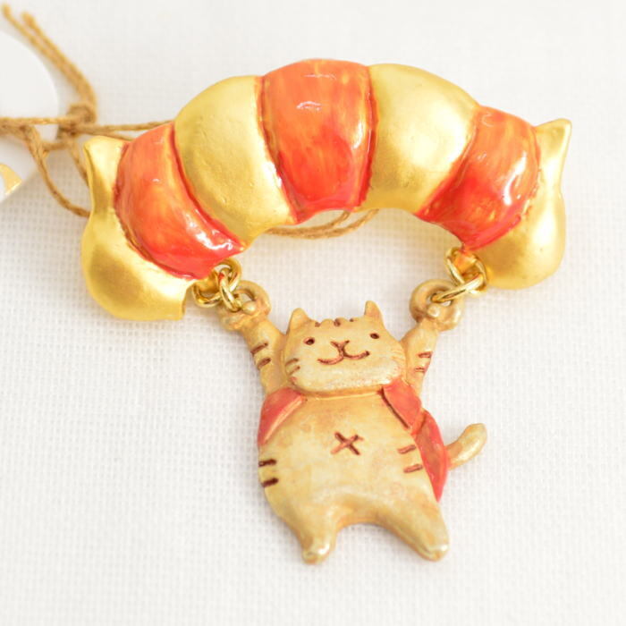 前足を目一杯広げてパラシュートを開く猫ちゃんが動くたびに揺れるブローチ。 降下はお手のものとばかりに堂々とした姿がとってもキュートなデザインです。