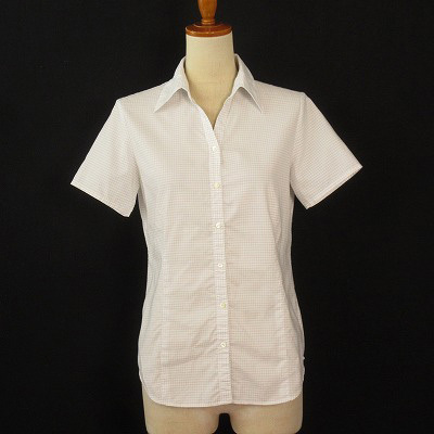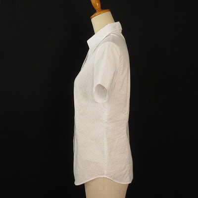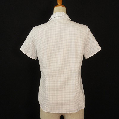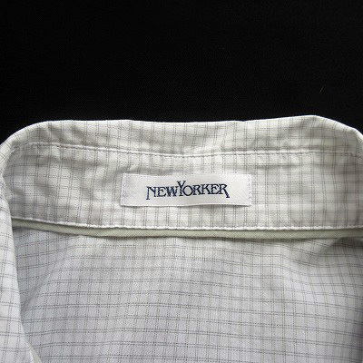 ニューヨーカー NEWYORKER シャツ オープンカラー チェック 半袖 9R 白 ホワイト グレー レディース