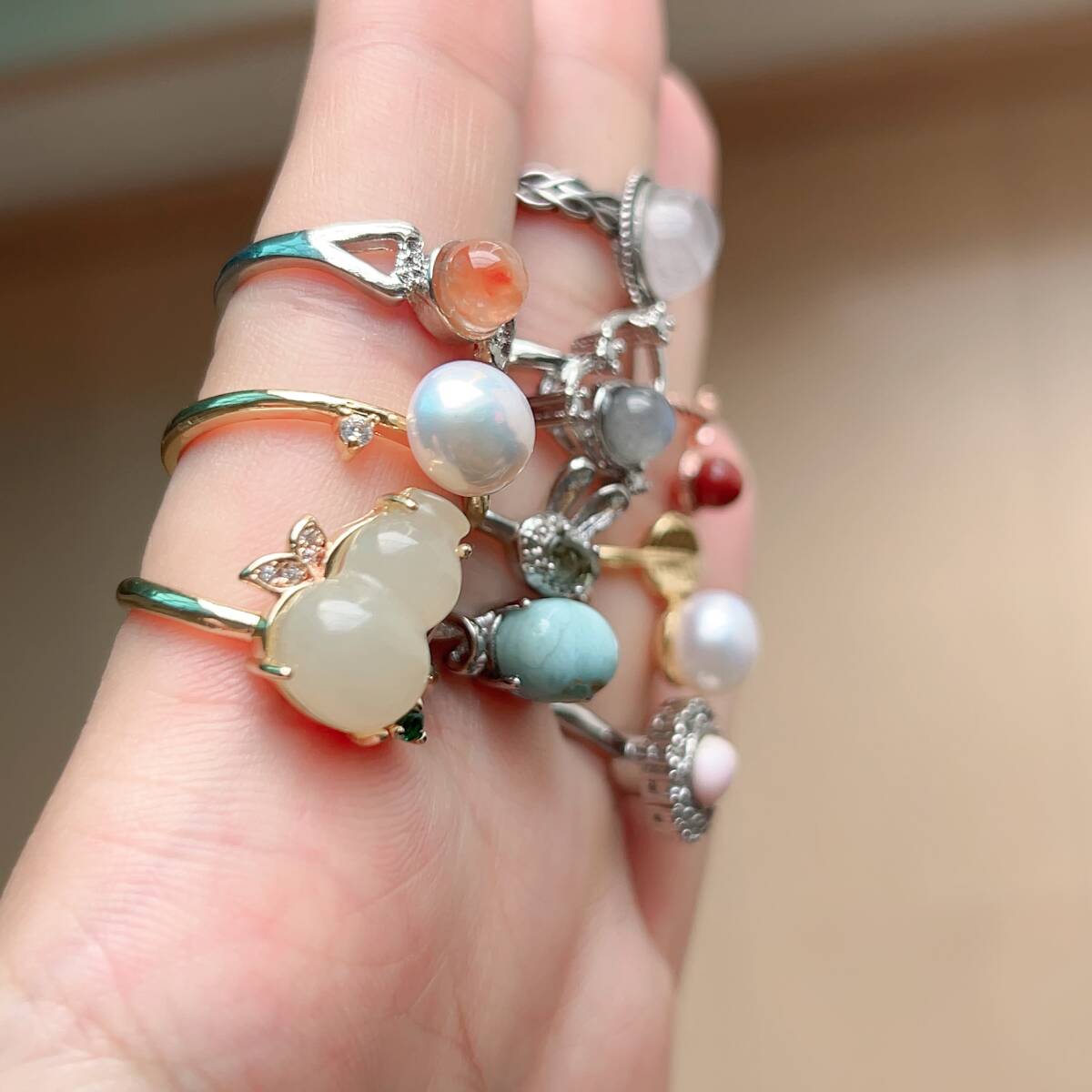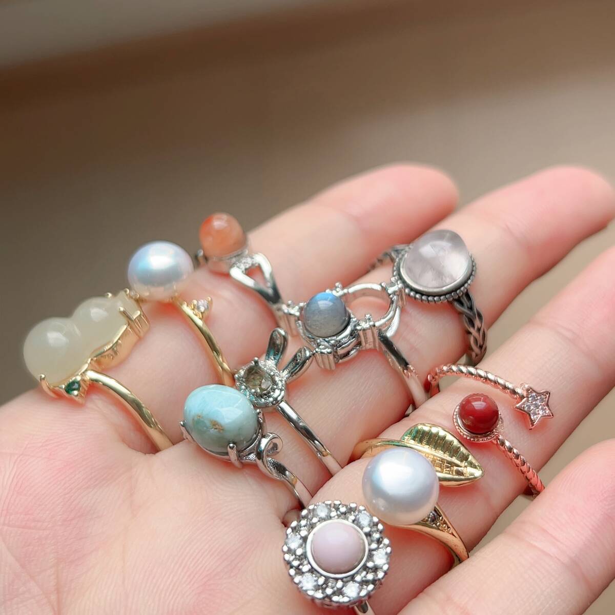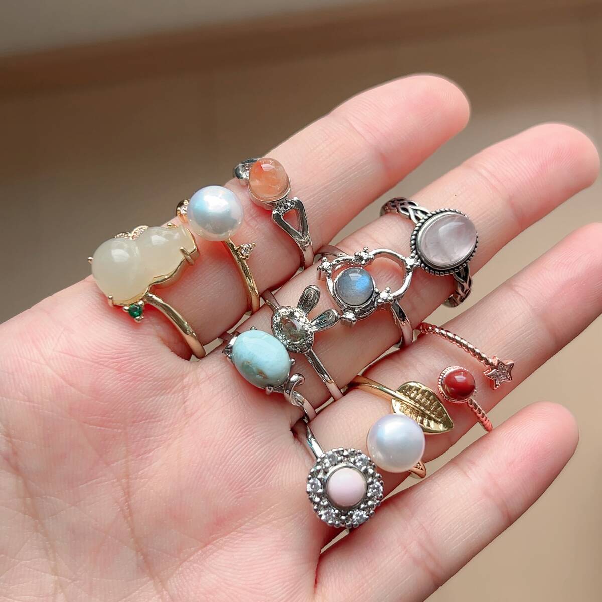 ◇お買得◇10点セット◇和田玉+真珠+トルマリン+紅水晶+グレームーンストーン+南紅瑪瑙◇指輪◇リング◇天然石◇パワーストーン◇巾着袋付