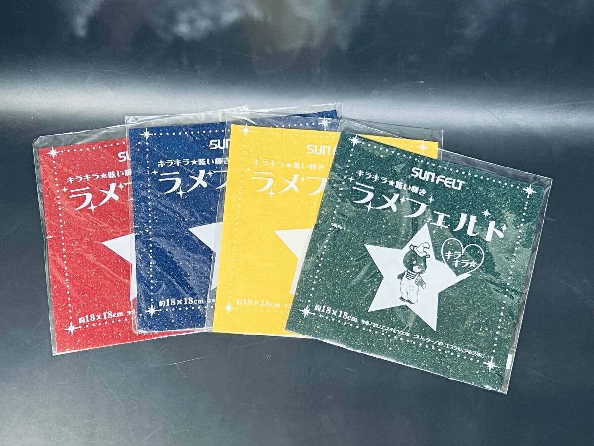 日本製 キラキラ ラメフェルト18x18cm 4色4枚 ハンドメイド 手工芸 手芸用品 材料 ホビー 製作 工作 アクセサリー