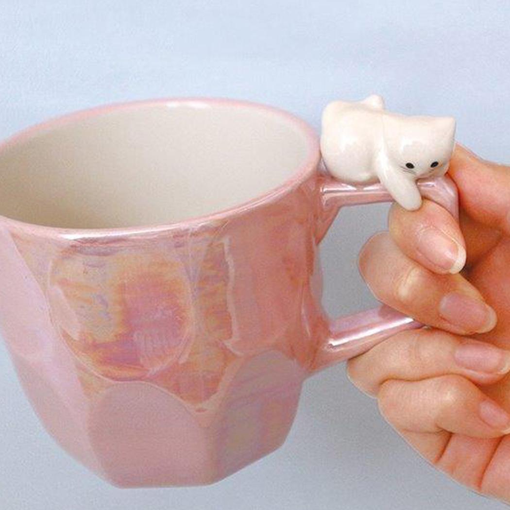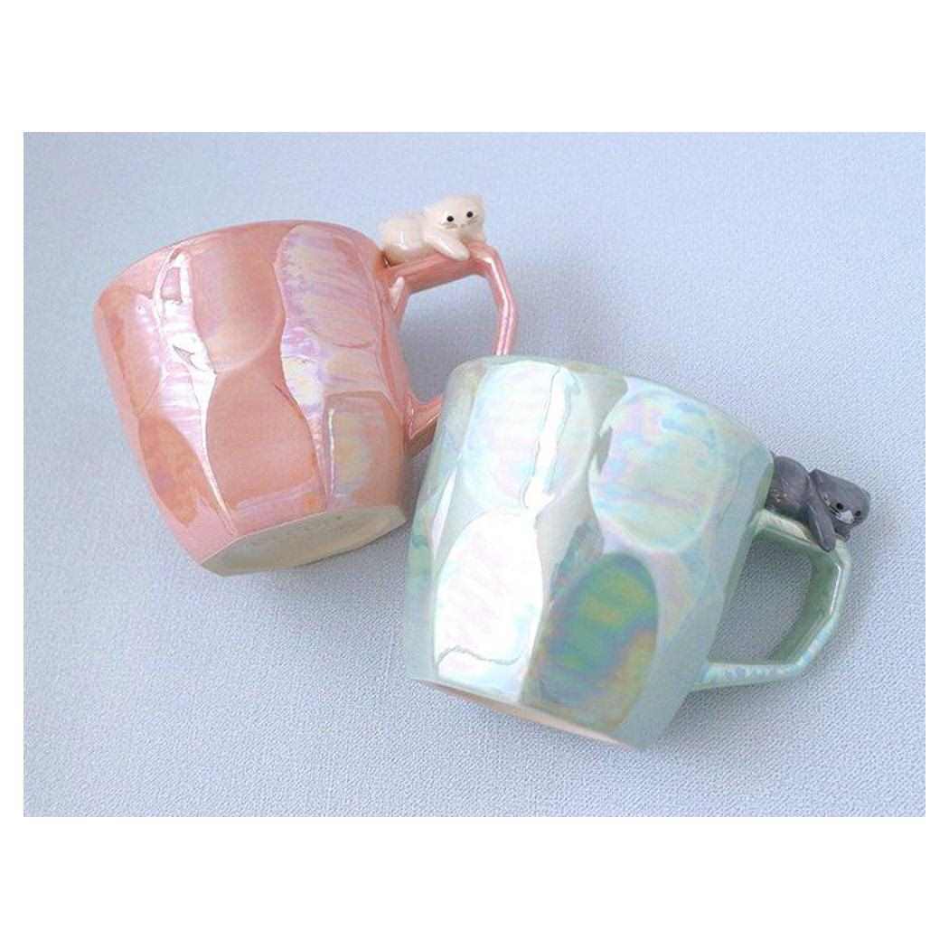 ハンドルにのった小さな猫がじゃれつくかわいいマグカップ 毎日が楽しくなるキュートな雑貨シリーズこちらはとってもカワイイ[マグカップ]ハンドルにのった小さな猫がじゃれつくかわいいマグカップです。マグカップはキラキラのラスター加工専用パッケージ入りでプレゼントにもオススメです。他にも可愛い雑貨あるのでお気に入りを探してみてね 電子レンジ不可サイズ:約90x125x94mm素材:陶製