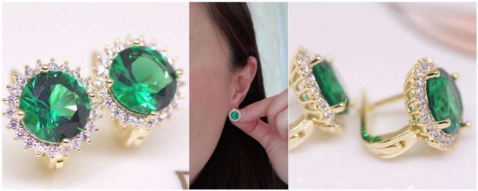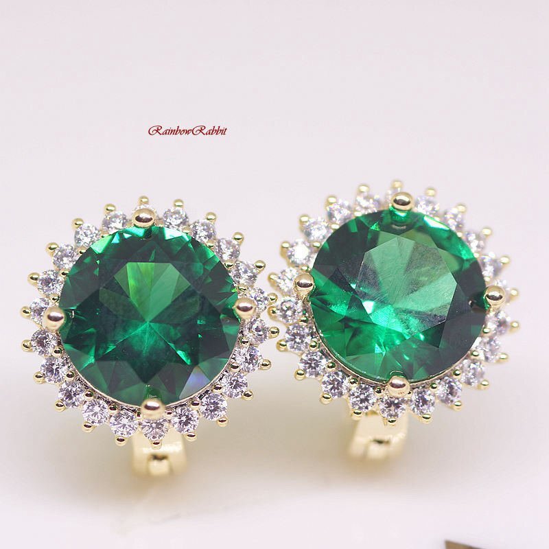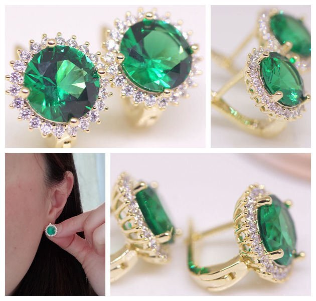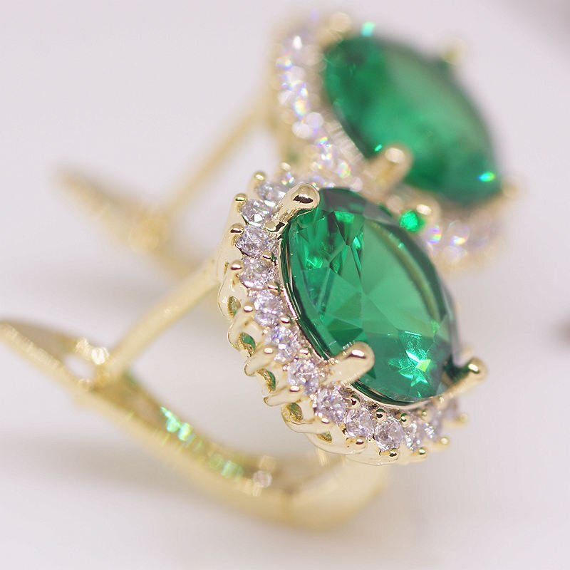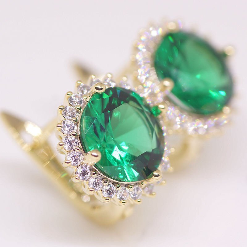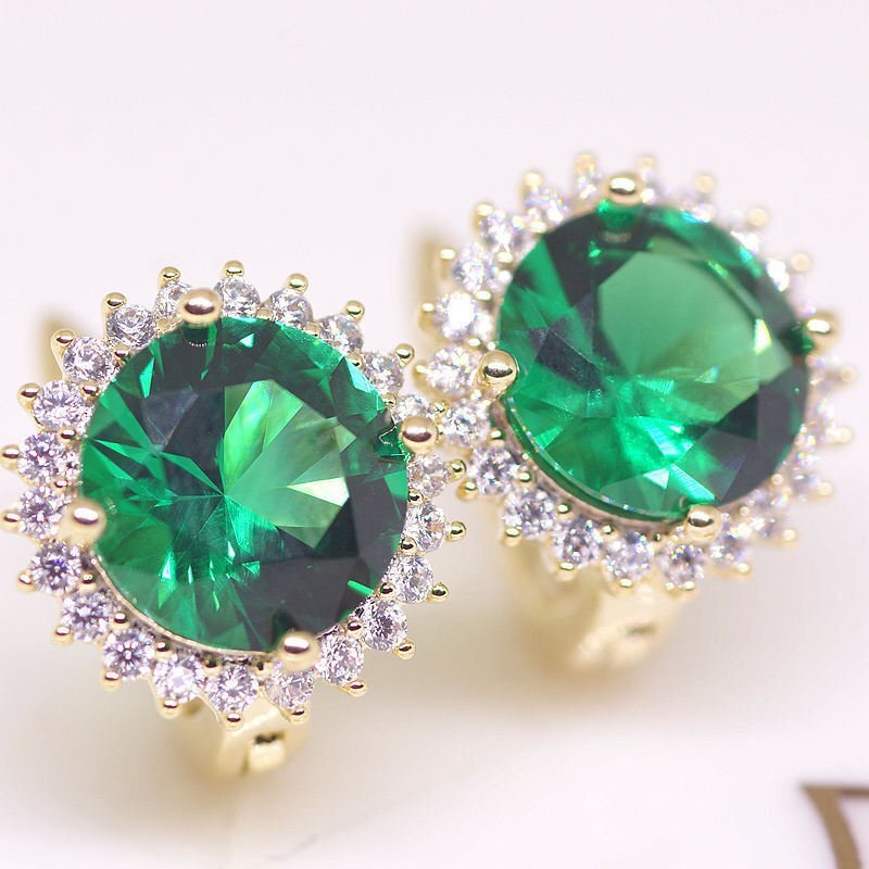 18K RGP ゴールド ダイヤ CZ グリーンフラワー ピアス gp5332