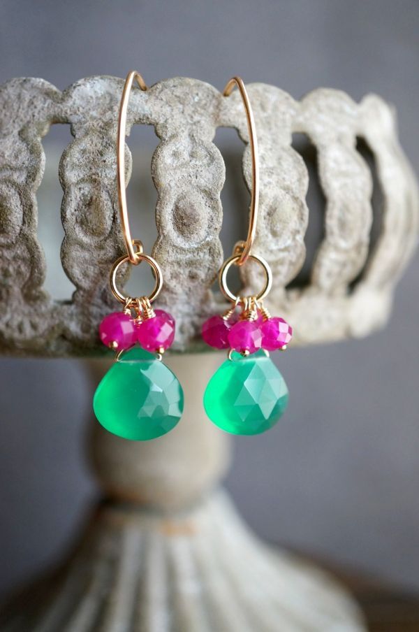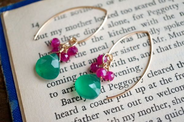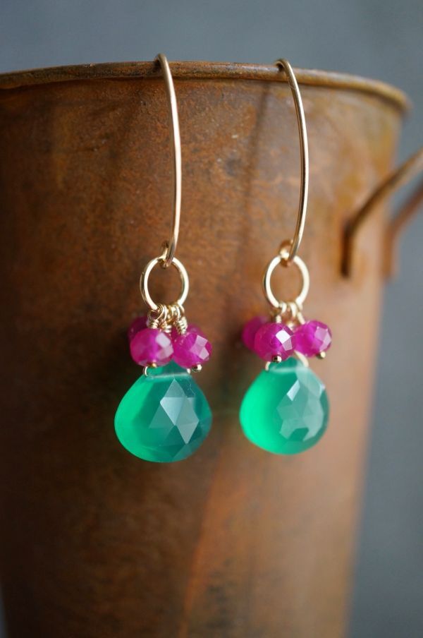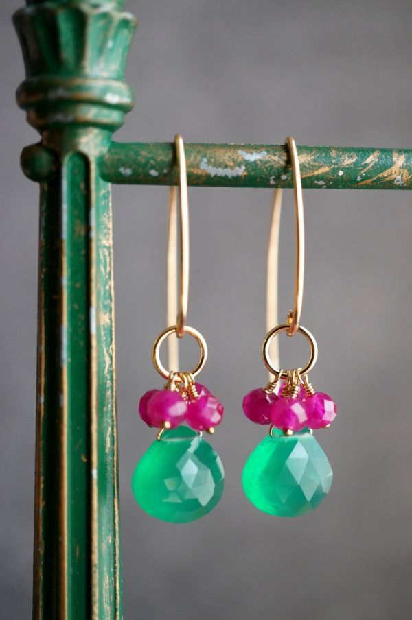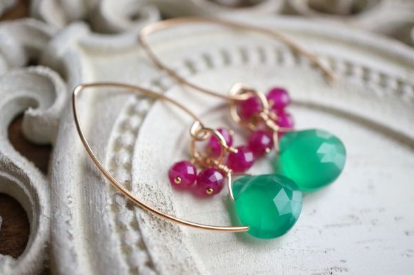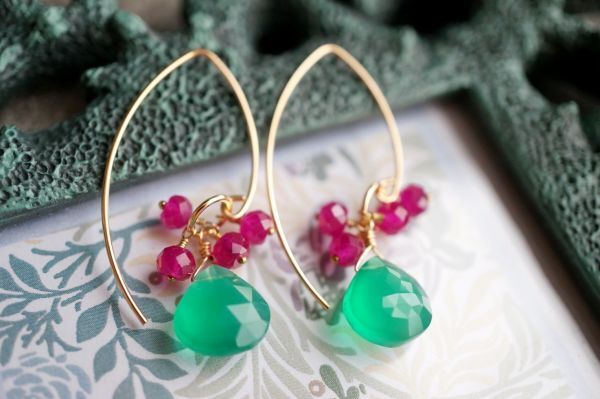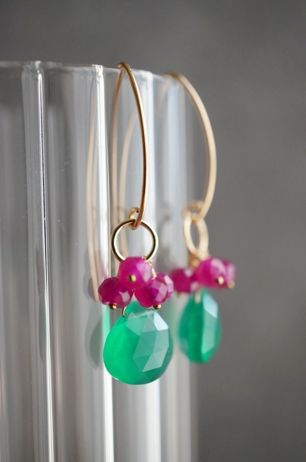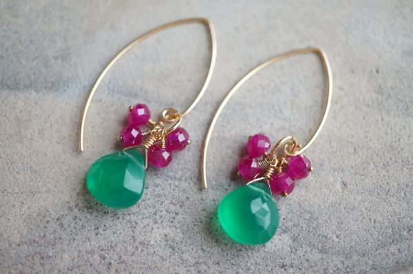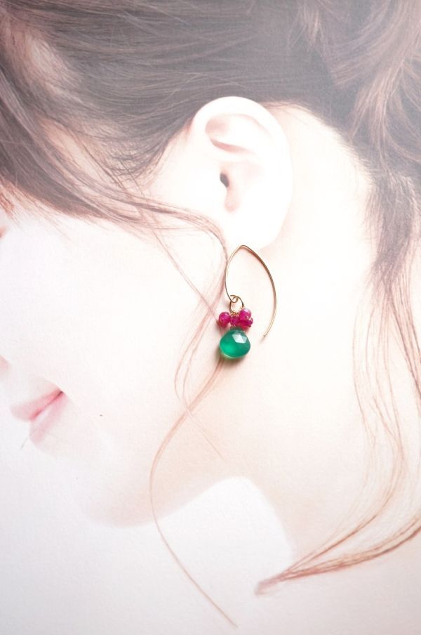 K14GF ピアス 2268 グリーンオニキス・ルビー  マーキースフック 天然石・パワーストーン 緑色 赤色 miracolo