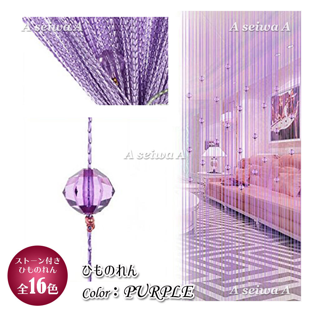 ひものれん 紐のれん ストリングカーテン キラキラストーン付き おしゃれ 目隠し 模様替え 間仕切り インテリア (パープル)