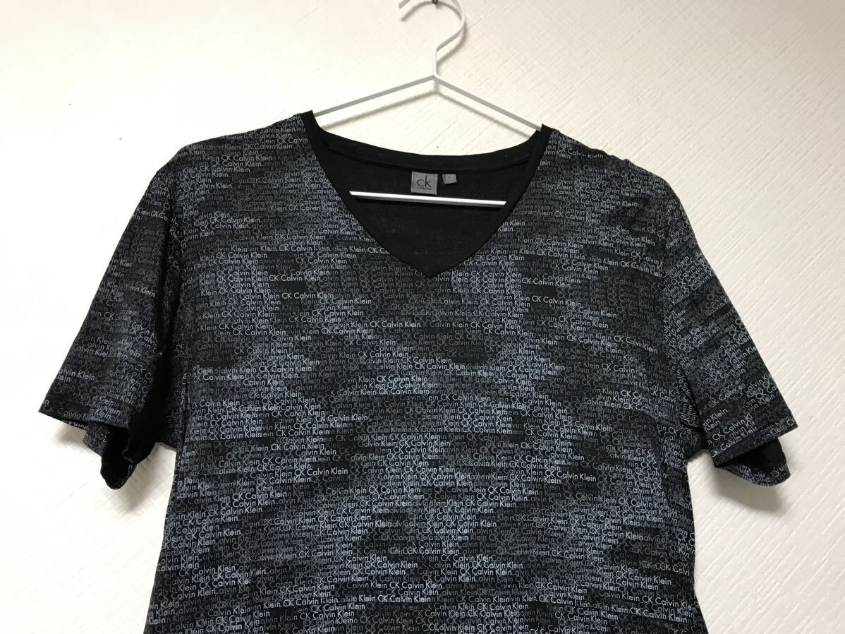 商品名:本物カルバンクラインCK CalvinKleinコットンロゴ総柄プリントVネック半袖TシャツメンズサーフアメカジミリタリーストリートワークビジネススーツモードゴルフバイカーロックバンドTバンTスポーツジムウェア黒ブラックL