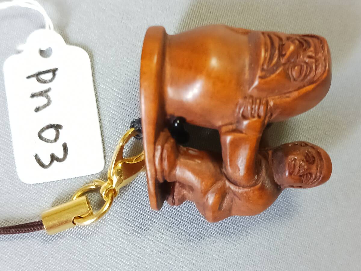 □圧倒的な存在感!!□ミニサイズ□根付 達磨(だるま)を運ぶ老人の根付 Pn03