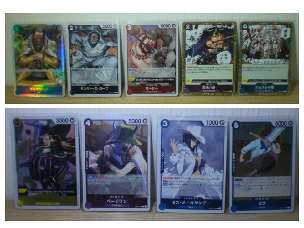 9枚セット!美品!ワンピースカード ボルサリーノ ガープ モーリー ページワン オールサンデー ゼフ カポネベッジ 雷鳴八卦 ゴムゴムの雨