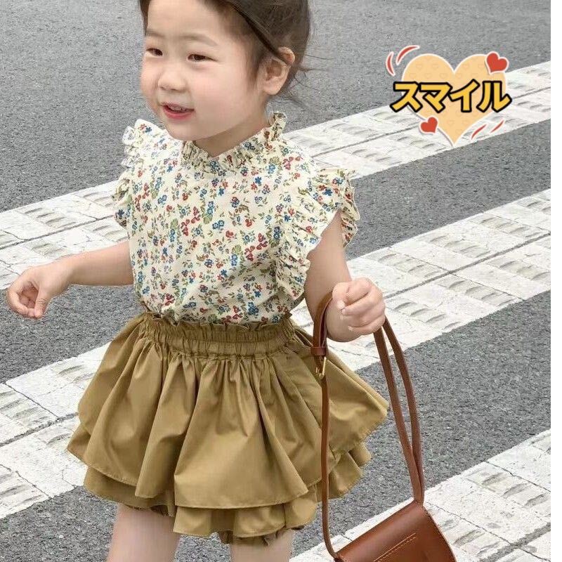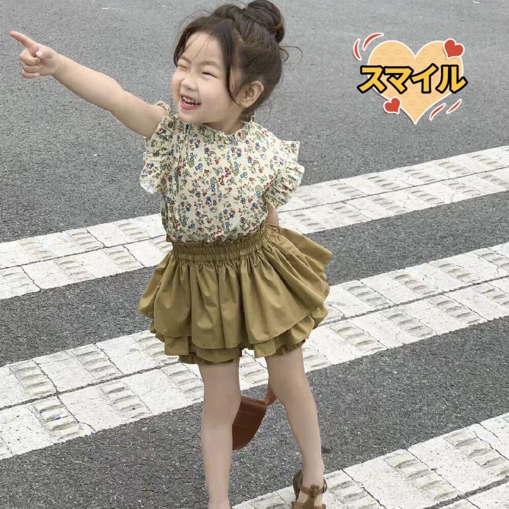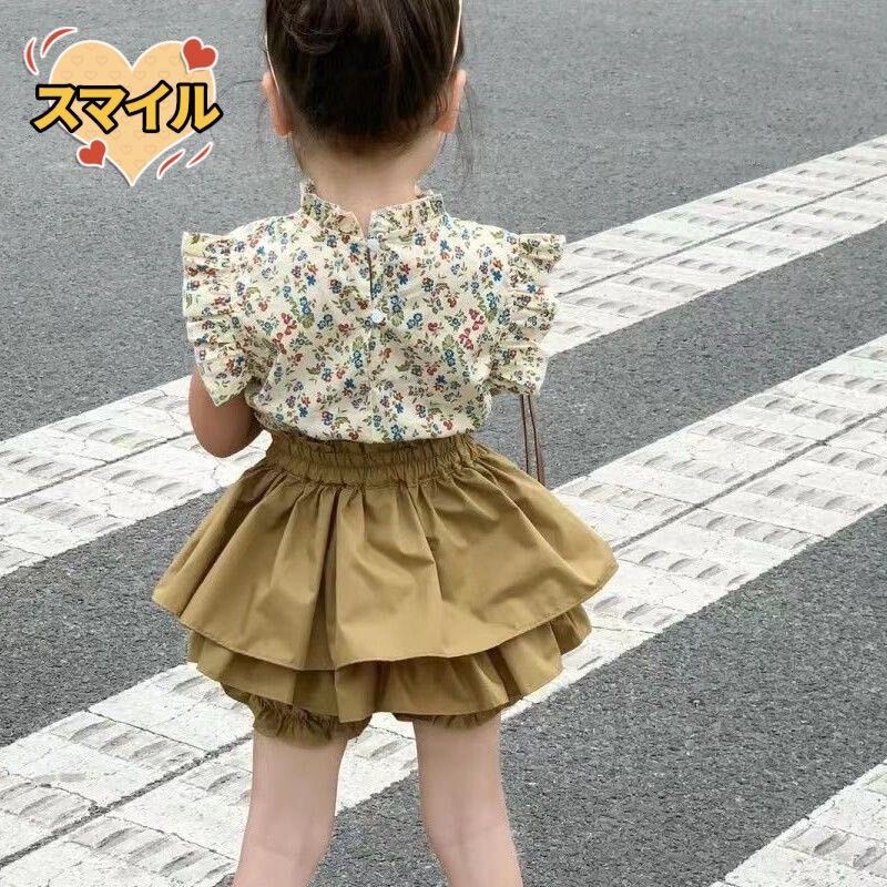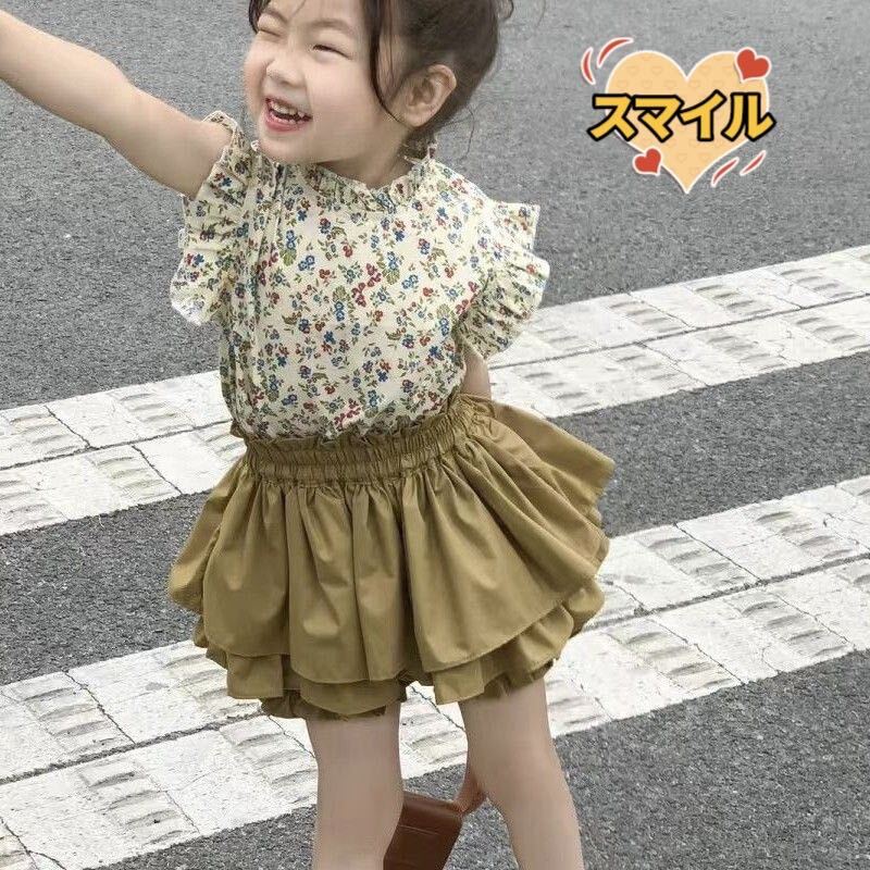 とっても可愛い花柄シャツとキュロットパンツのセットアップになります