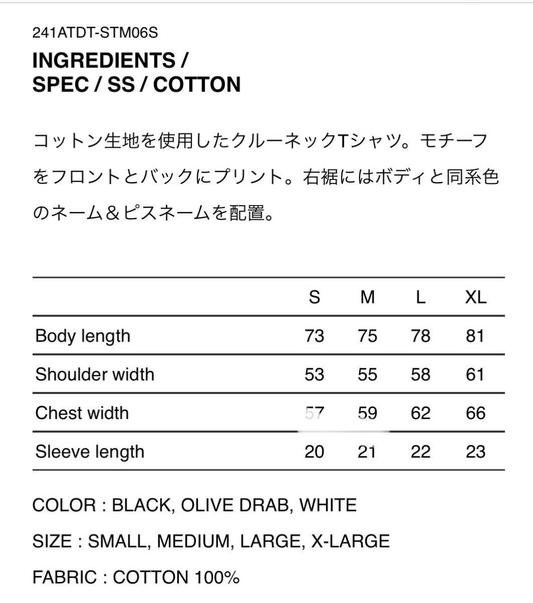 WTAPS 2024SS INGREDIENTS SS TEE WHITE Mサイズ