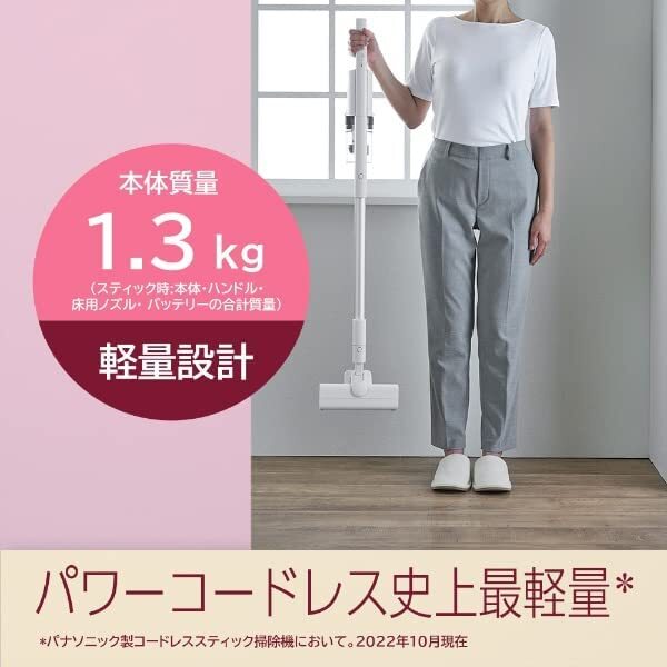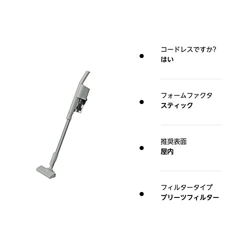 「パナソニック 掃除機 コードレス 軽量 スティック サイクロン セージグリーン MC-SB33J-G」▼4549980682098▼(商品説明)3)軽さ重視/セージグリーン色・セージグリーン コンパクト MC-SB33J-G・・PatternName:本体のみStyle:3)軽さ重視/セージグリーン色・パワーコードレス史上No.1*の軽さ。本体質量1.3 kg(スティック時) *当社製コードレススティック掃除機において。2022年10月現在。・操作性にこだわった本体デザイン 人間工学に基づき採用されたハンドルと重心バランスにより手元負担を軽減。スムーズな操作性を実現・驚くほど軽いノズルの操作感 独自のローラー配置により、前後左右にノズルがスムーズに動く・原産国:日本説明 パワーコードレス史上No.1*の軽さ 本体質量1.3 kg(スティック時)&操作性UPでスイスイお掃除 ※1 当社製コードレススティック掃除機において。2022年10月現在。