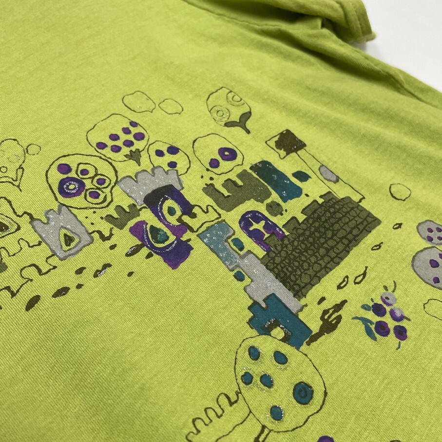 【38】io comme io グリーン 花柄 半袖Tシャツ 大人可愛い 個性的 デイリー 日本製 コットン カットソー マツオ センソユニコ イオコムイオ