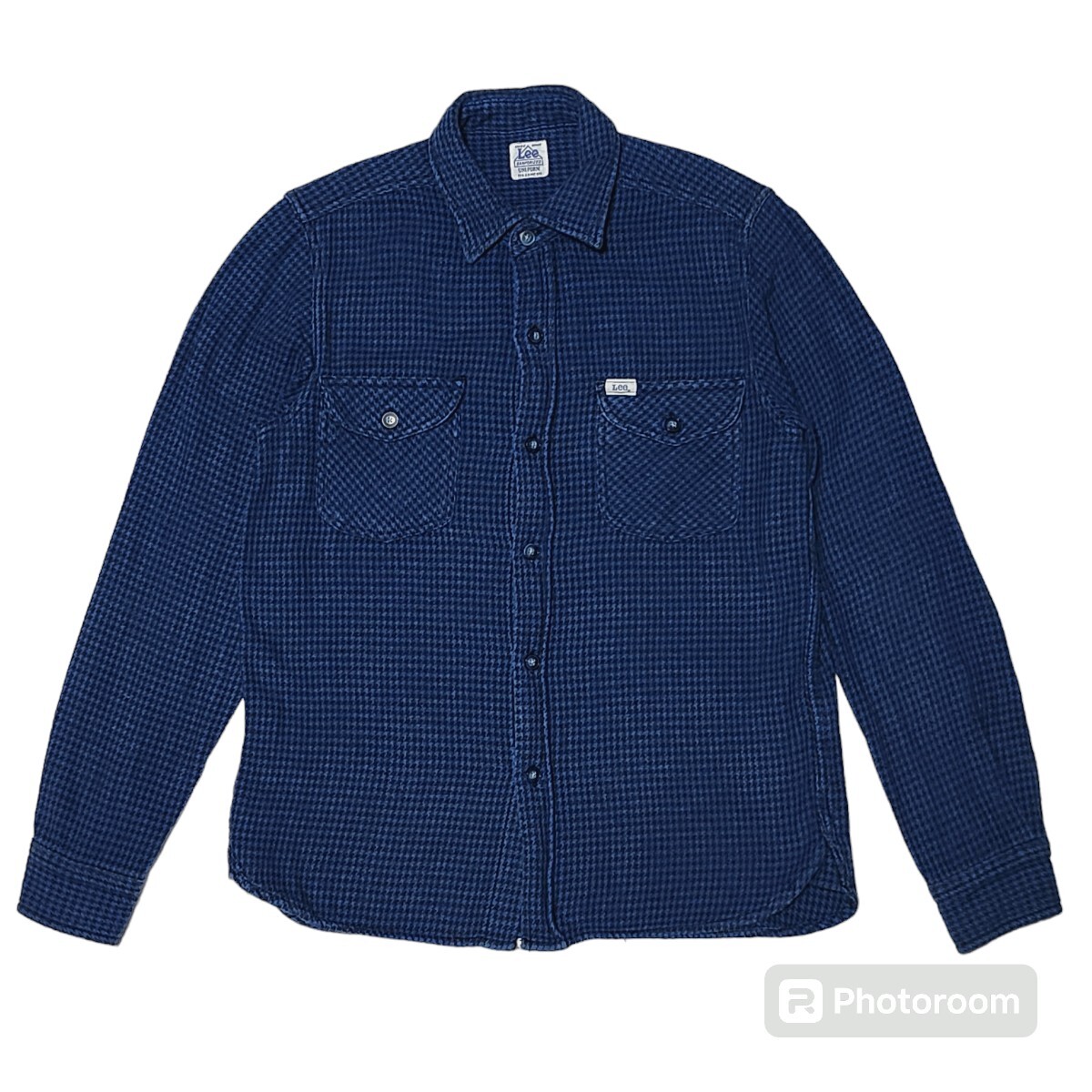 S Lee リー ネルシャツ ビンテージ 復刻 千鳥格子 マチ付き 紺×黒 ネイビー×ブラック ヘビーネル コットン 長袖シャツ