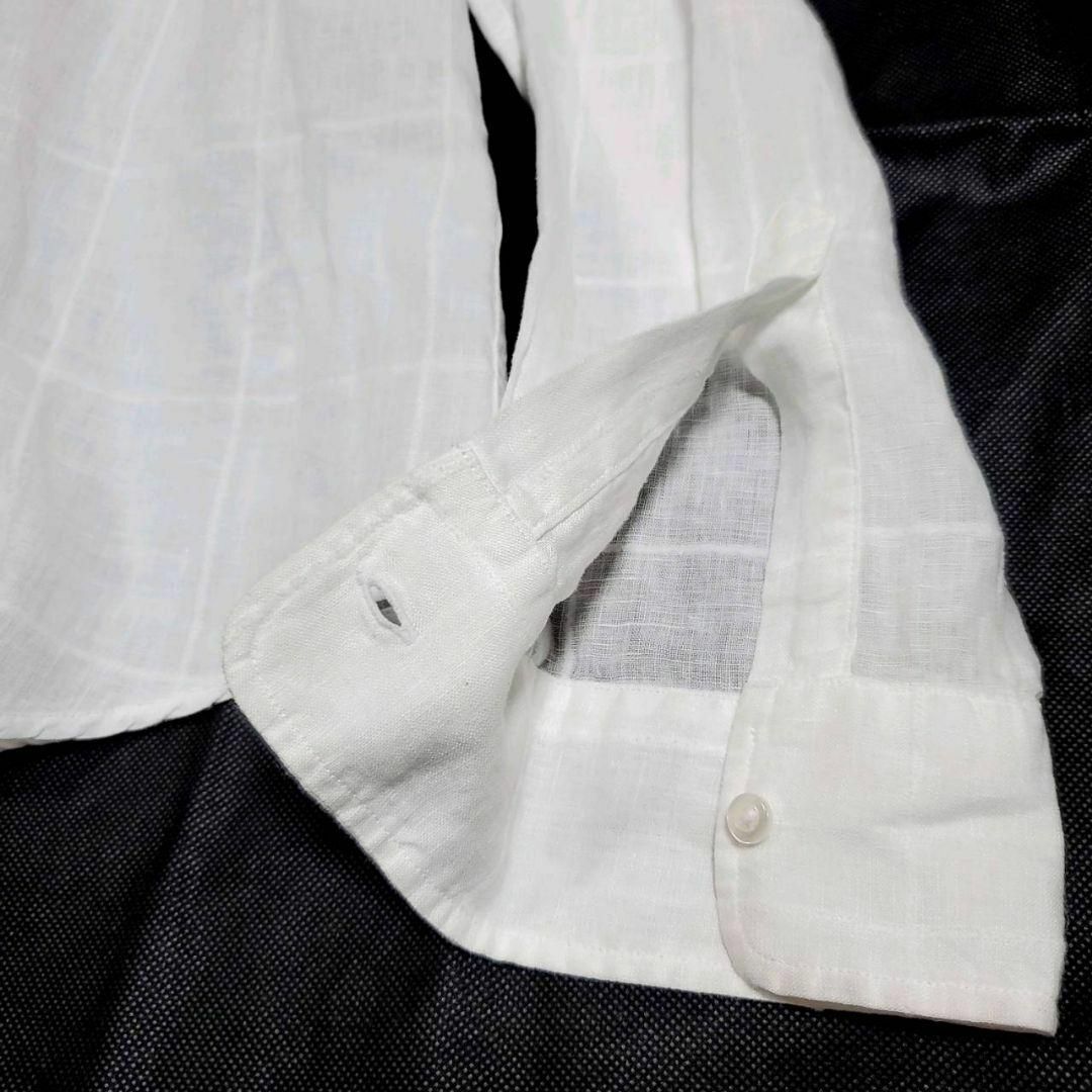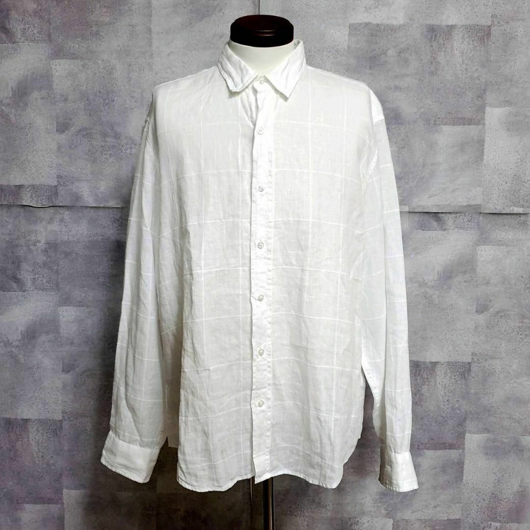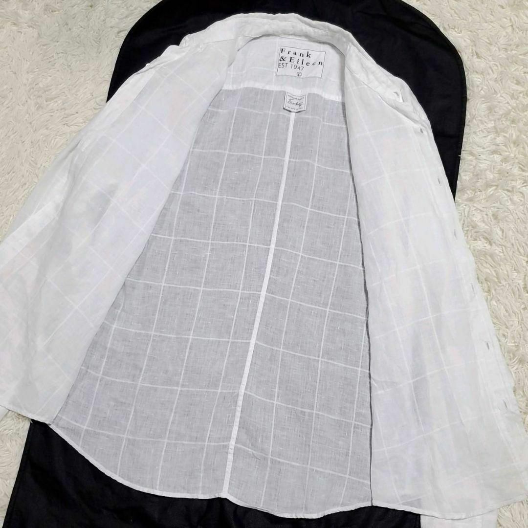 極美品 L フランクアンドアイリーン FINBAR リネン コットン シアーシャツ 白 大判チェック Frank&Eileen 麻 綿 長袖 トップス ホワイト ウィンドウペン 3720700115