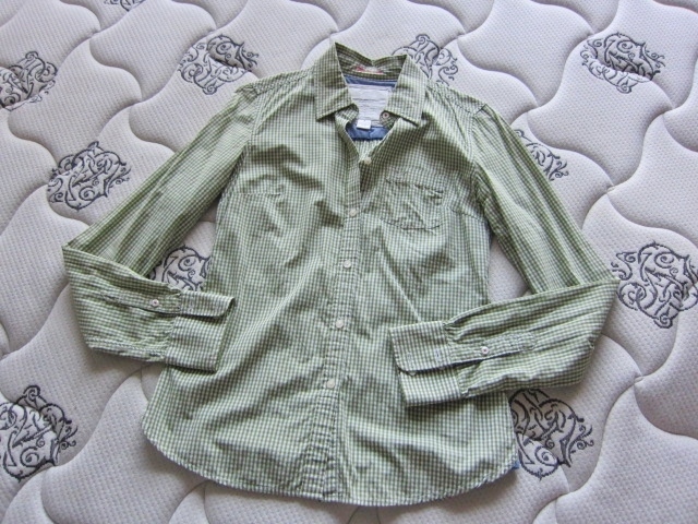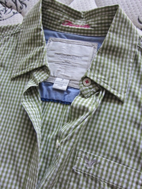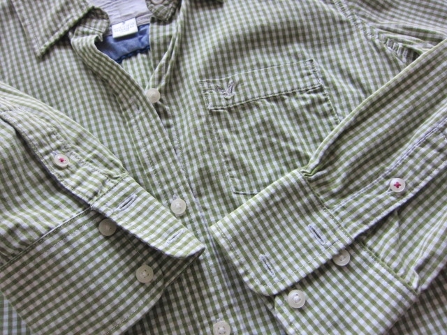 綺麗め アメリカンイーグル シャツ 緑 チェック柄 長袖 ブランド American Eagle 長袖 Brand ブラウス 刺繍 着心地良い素材 レア 得 特