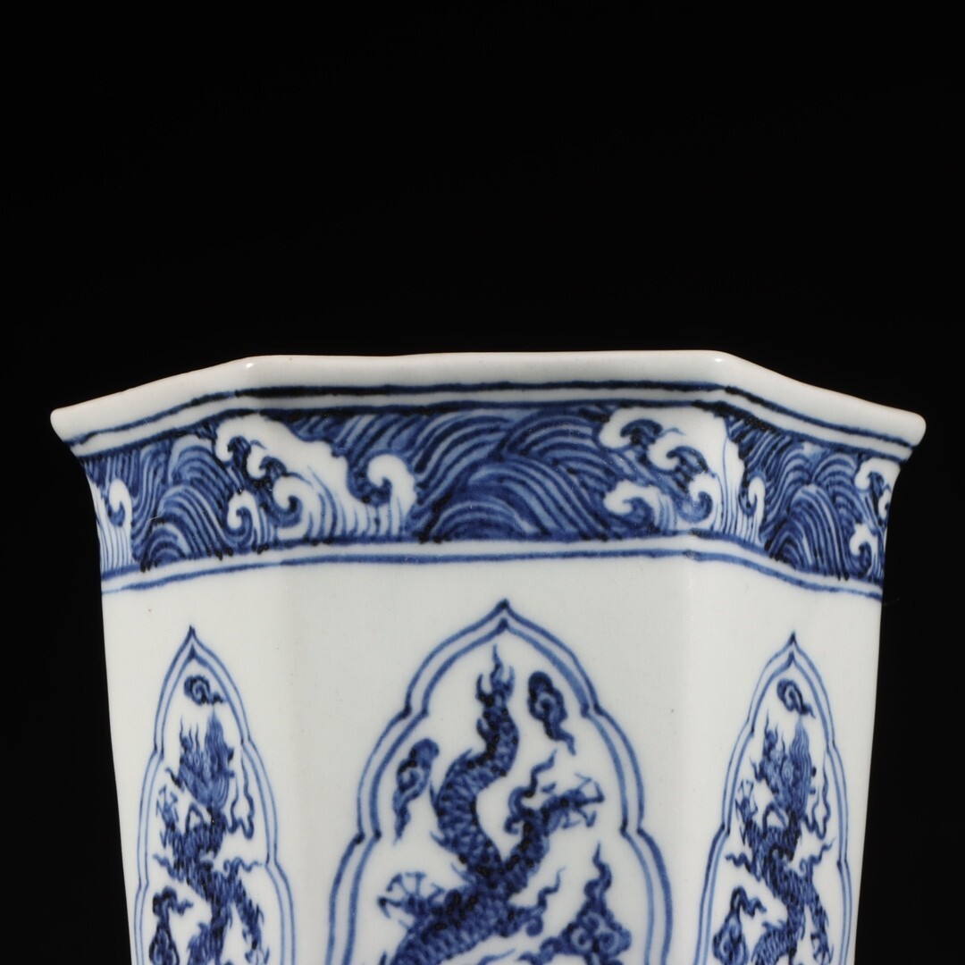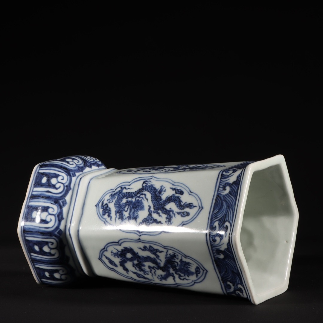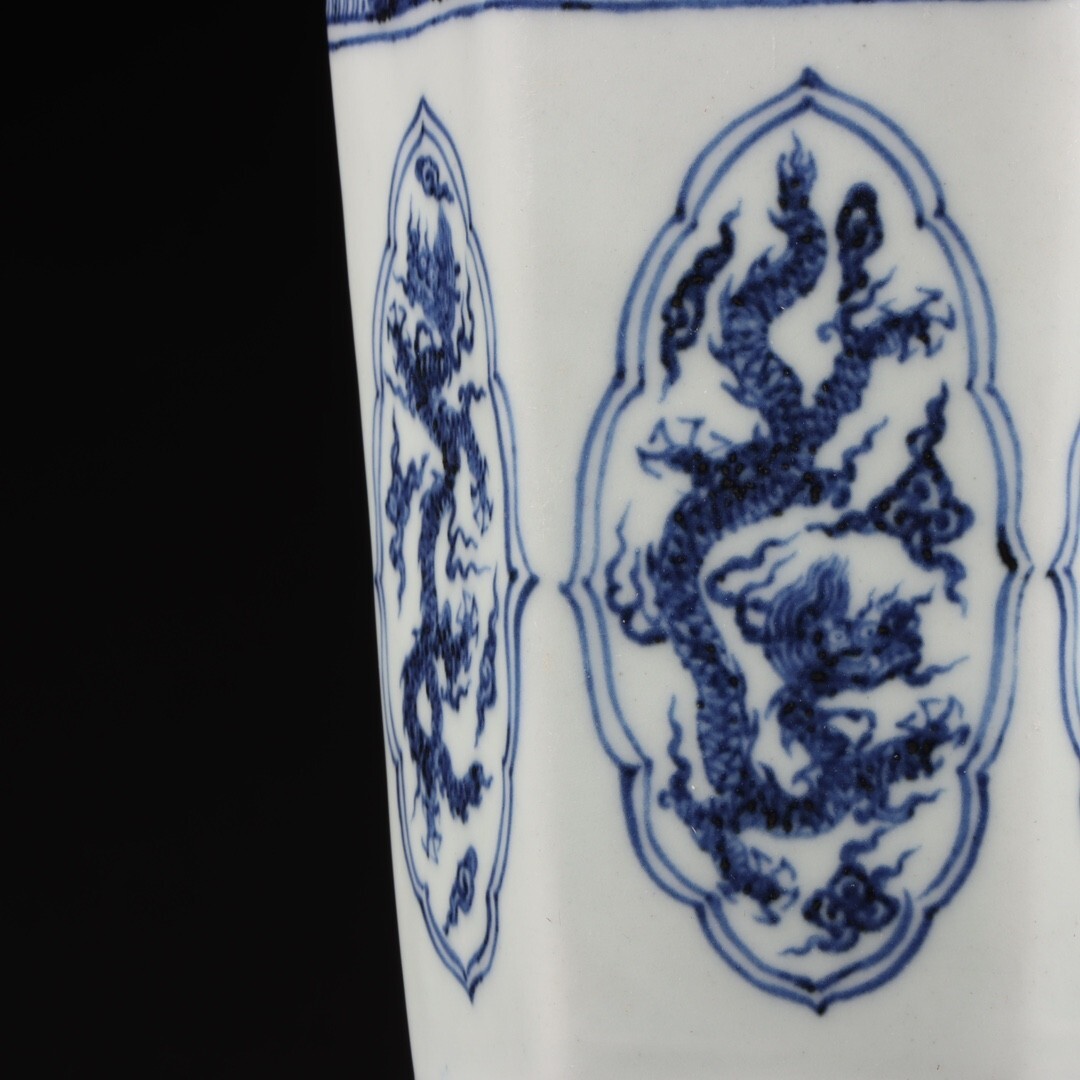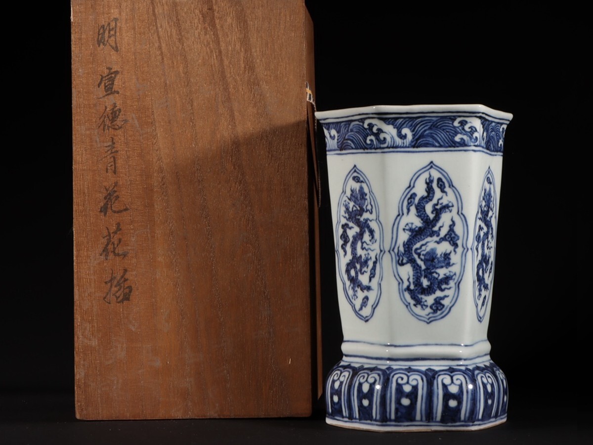 【瓏】陶磁器 青花龍紋花器 大明宣徳年製 染付 置物擺件 賞物 古美術 陶芸 骨董品 蔵出