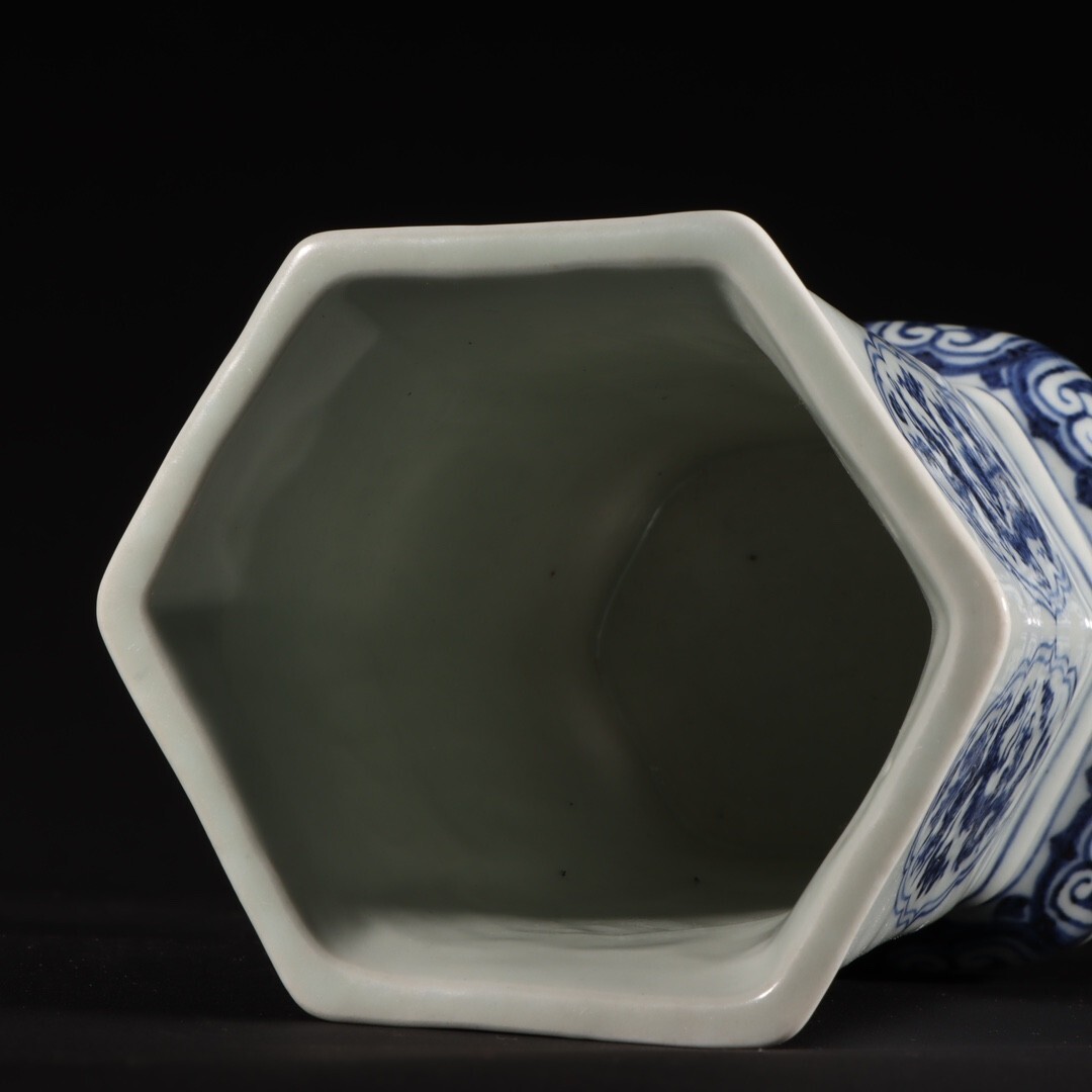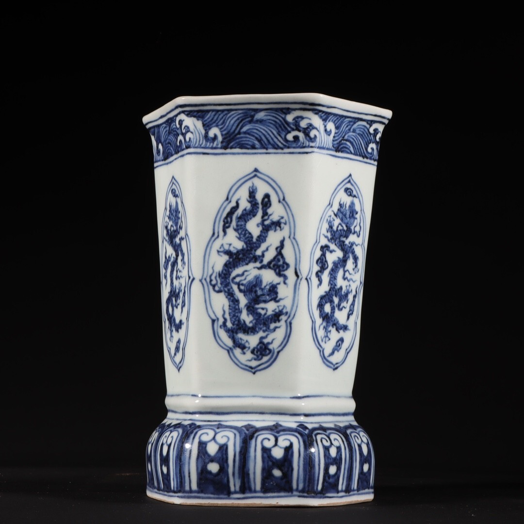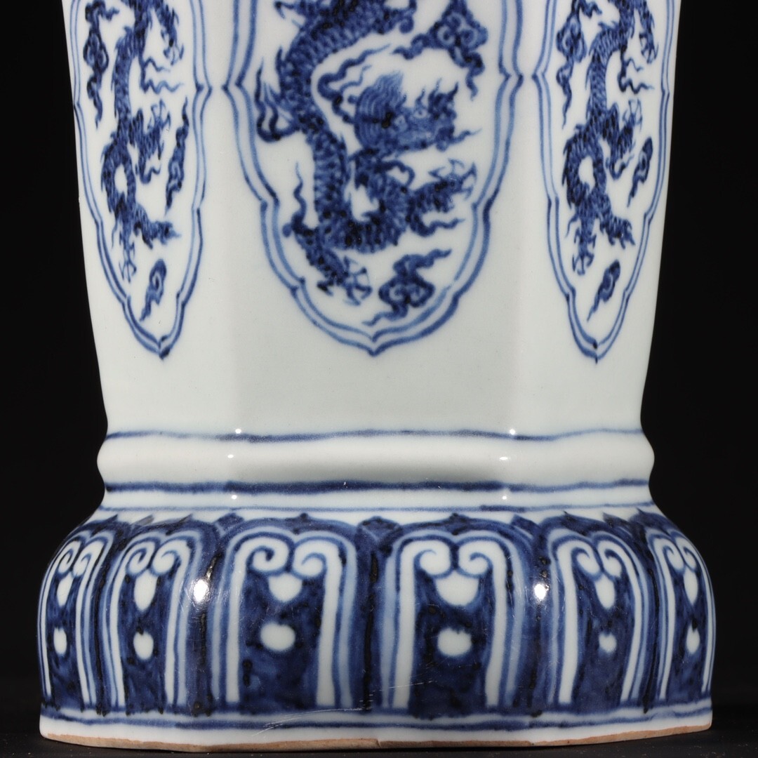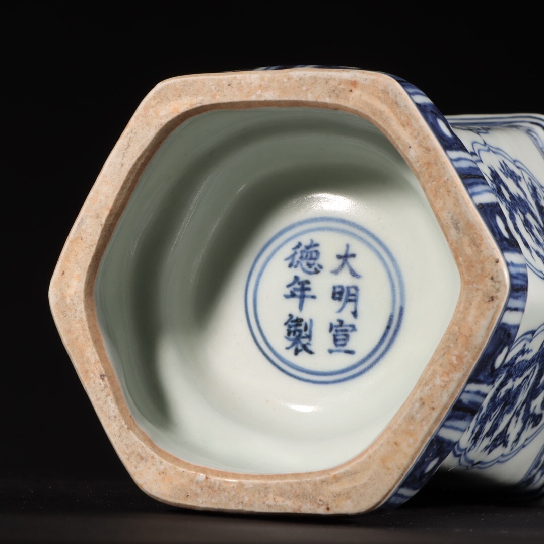 【瓏】陶磁器 青花龍紋花器 大明宣徳年製 染付 置物擺件 賞物 古美術 陶芸 骨董品 蔵出