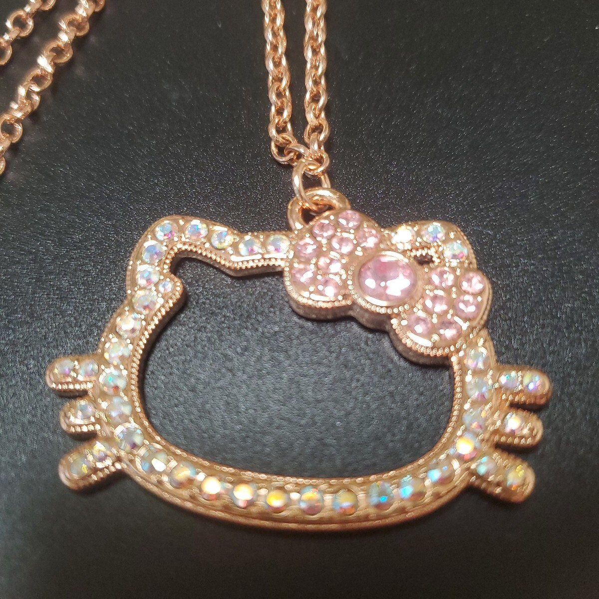 キティちゃんの顔型のラインストーン付きチャーム付き