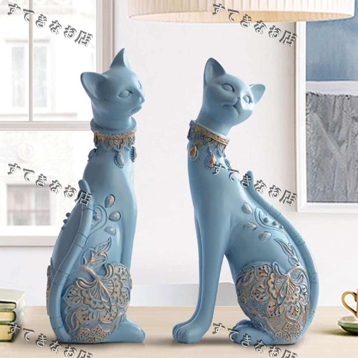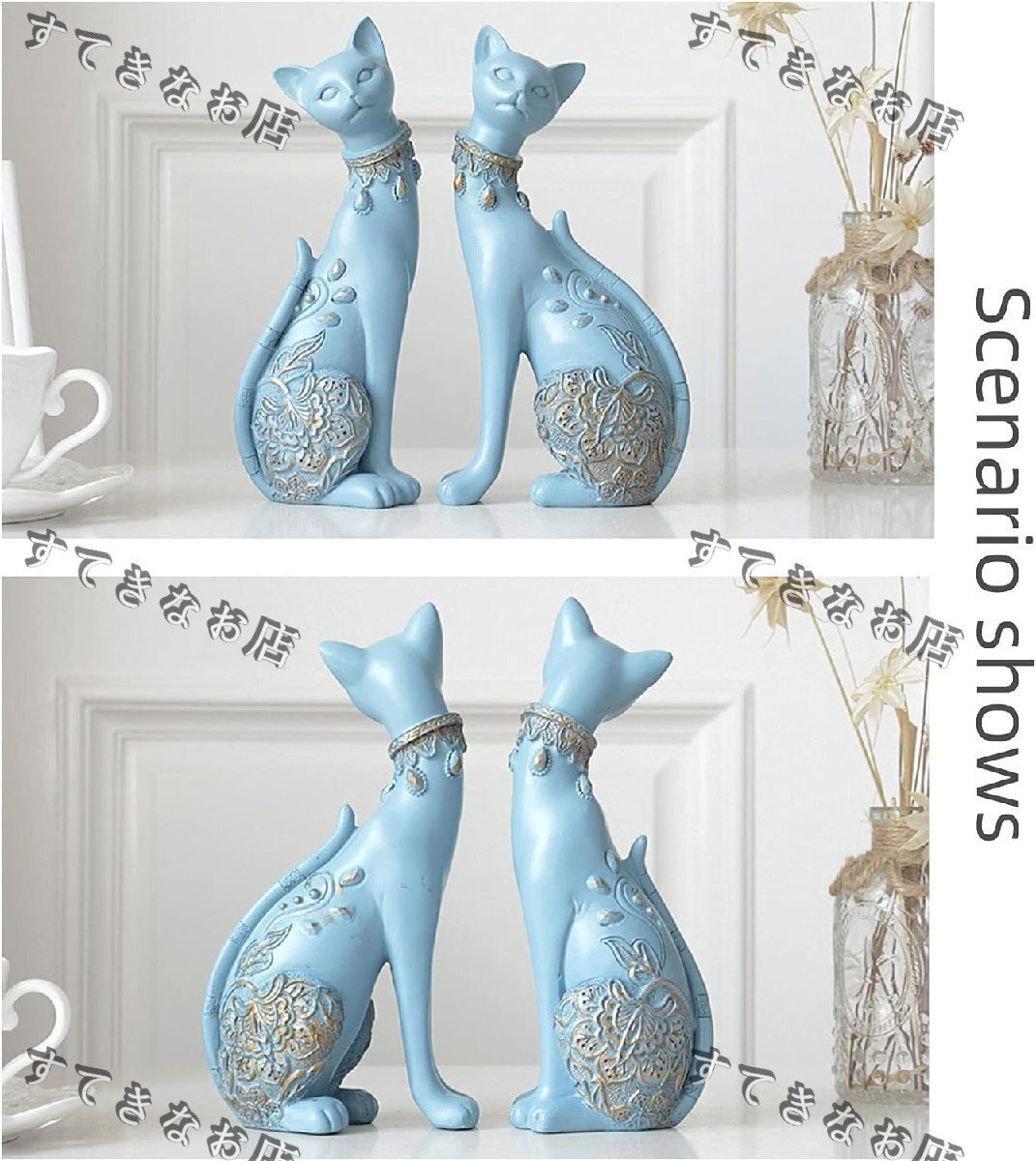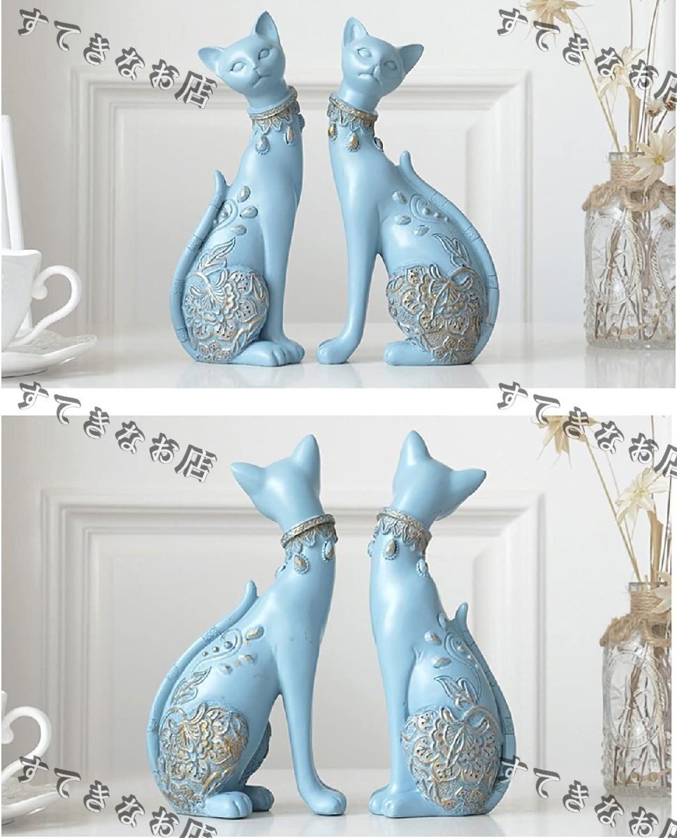 猫像 ホームデコ 部屋の装飾 置物、カップル リビングワインキャビネット テレビ装飾 ウェディングギフト ファーストチョイス (ペールブル