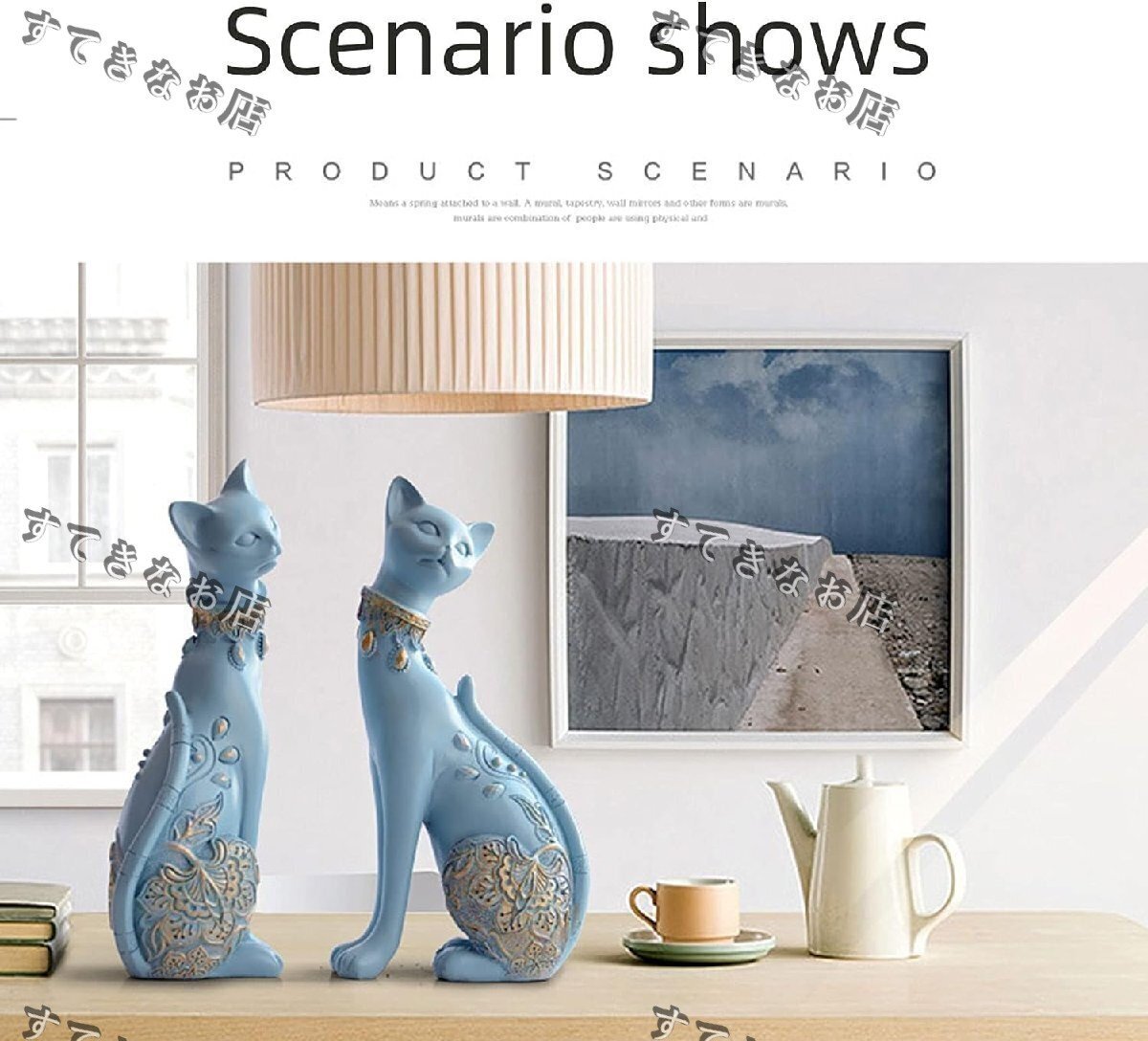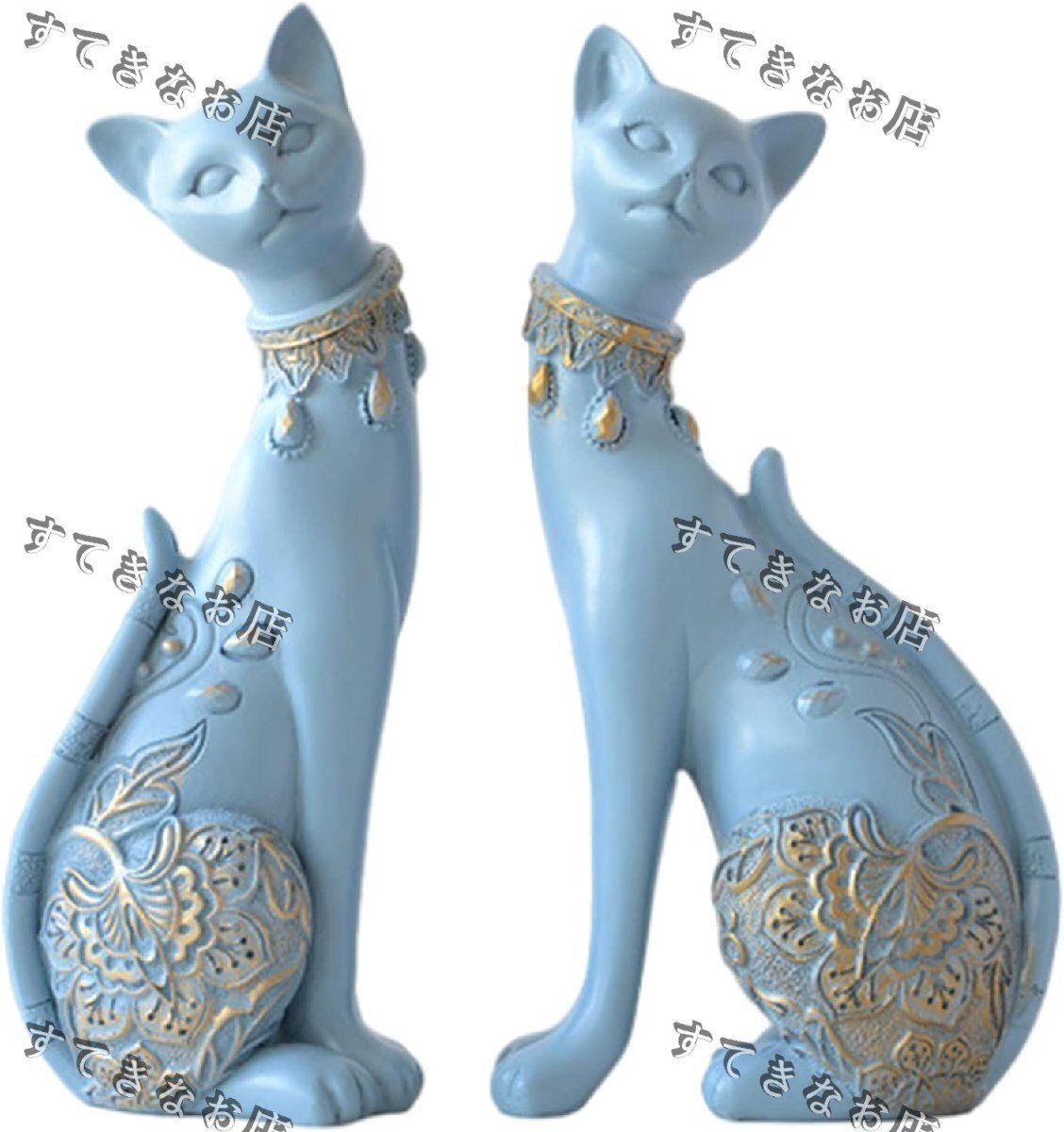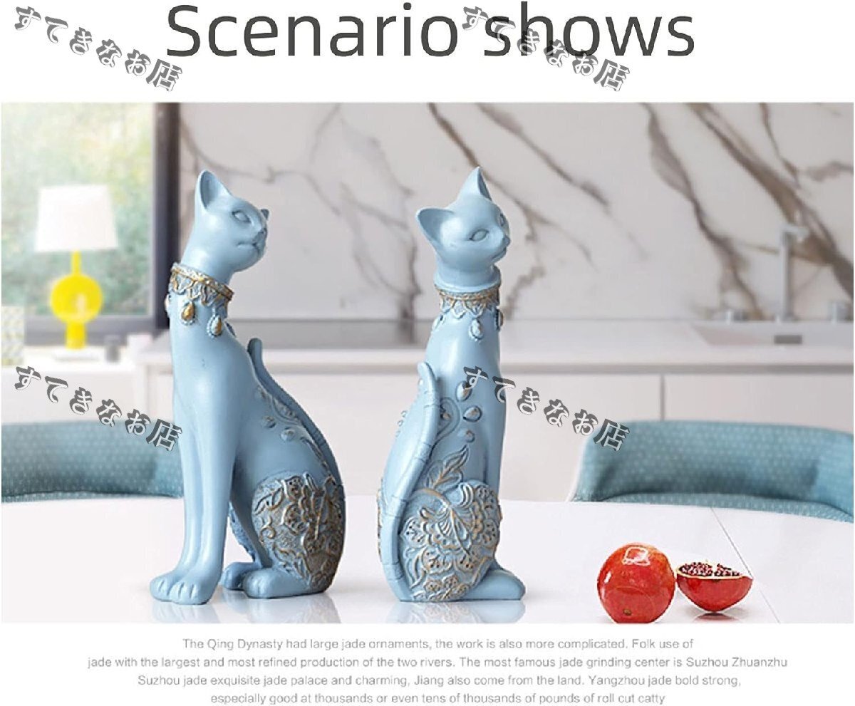 猫像 ホームデコ 部屋の装飾 置物、カップル リビングワインキャビネット テレビ装飾 ウェディングギフト ファーストチョイス (ペールブル